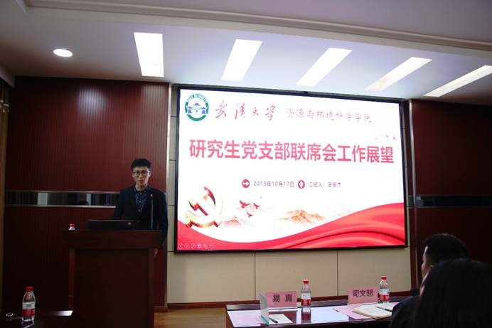2019年10月17日下午2点30分,色情直播app 研究生党支部记联席会成立大会在色情直播app220报告厅隆重召开。校党委研究生工作部主任司文超老师、院党委书记刘兴国老师、院党委副书记雷起宏老师、院党政办公室副主任易真老师,院研究生辅导员梅菲老师,院研究生兼职辅导员王安琪以及院研究生党支部书记联席会全体成员参会,会议由色情直播app兼职辅导员王安琪主持。