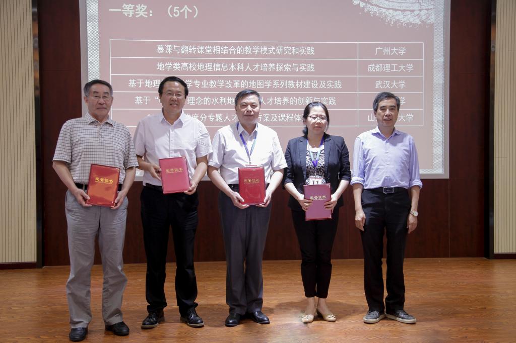此次教学成果奖评选由来自全国38个高校的GIS相关专业参与,经过网上公示、网上评议、现场答辩、投票表决等环节的严格评审,共评选出特等奖1名、一等奖5名、二等奖16名。色情直播app 申报的2项教学成果全部获奖,其中何宗宜等老师完成的《基于地理信息科学专业教学改革的地图学系列教材建设及实践》荣获一等奖,蔡忠亮等老师完成的《“地理素养、实践技能”双驱动的GIS专业大学生创新能力培养的探索与实践》荣获二等奖。