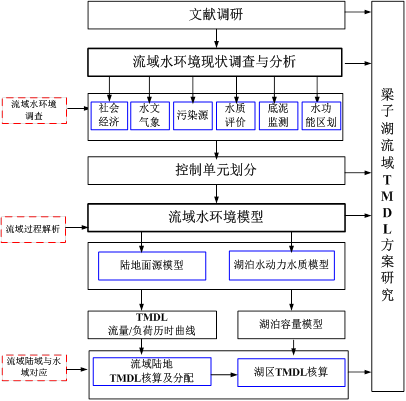 全面分析梁子湖流域社会经济、水文情势、水质现状和水生态系统状况,明确流域水环境保护目标,针对梁子湖流域的TMDL(最大日负荷总量)计划,基于流域面源模型、湖泊水动力水质模型,构建梁子湖流域的水环境模型体系核算梁子湖TMDL,开发集成水质管理模型系统平台,为湖区水质管理提供技术支撑。
