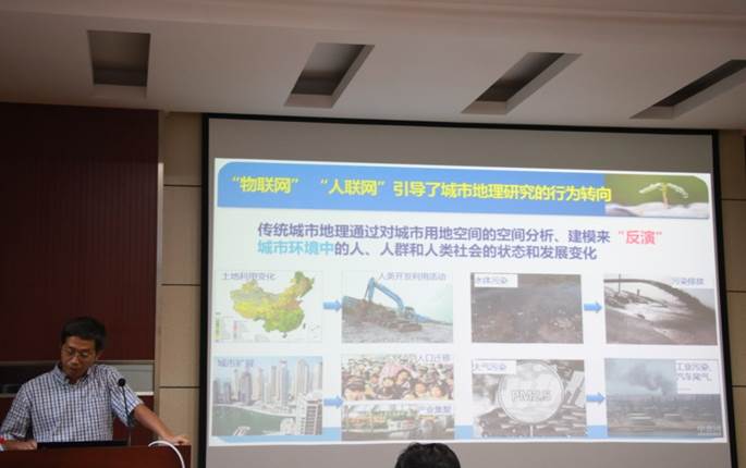 就城市地理研究在新的技术背景和社会发展环境下面临的一些新问题以及整个城市地理研究存在的新思维方式,何建华为大家做了详细的报告。他指出,就报告背景而言,最关键的一点就是 “物联网”、“人联网”引导城市地理研究的行为转向,也即在新兴技术、新兴研究领域大背景下,城市地理学面临的一个新的变化。