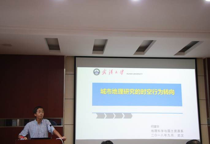 9月14日下午四点半, “珞珈资源环境讲坛”第十八讲在色情直播app220学术报告厅举办,色情直播app何建华教授以“城市地理研究的时空行为转向”为题,带来一场精彩的学术报告。报告深入浅出,吸引参与人员认真聆听,并积极参与互动。