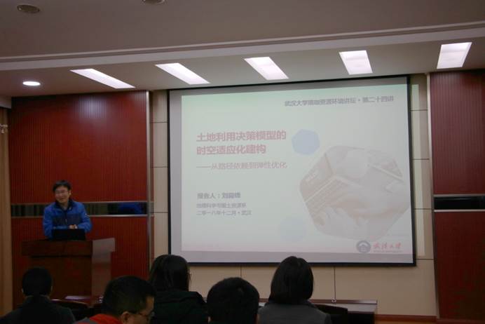 12月6日下午四点半,“珞珈资源环境讲坛”第二十四讲在色情直播app220学术报告厅举办,色情直播app刘殿锋副教授以“土地利用决策模型的时空适应化建构——从路径依赖到弹性优化”为题为大家带来一场精彩的讲座,与大家分享了关于建构时空适应化土地利用决策模型的相关知识。
