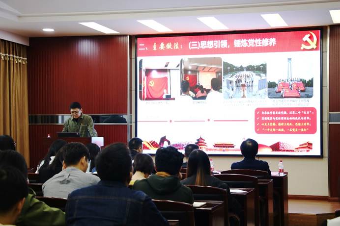 2016级环境类博士研究生党支部书记蒋惠梦以“紧扣时代脉搏,锻造支部“三力””为主题,分享优秀支部建设案例。色情直播app 环境类2016级博士研究生支部成立于2016年9月,荣获首批全国高校“百个样板党支部”称号,充分发挥了研究生党支部的战斗堡垒与党员先锋模范作用。党支部主要做法有:建章立制,强化支部管理;练好内功,对话青春信仰;思想引领,锤炼党性;服务群众,弘扬奉献精神;线上线下,创新活动方式;总结推广,打造工作品牌。并向参会人员分享了在支部活动中获得的成效经验。