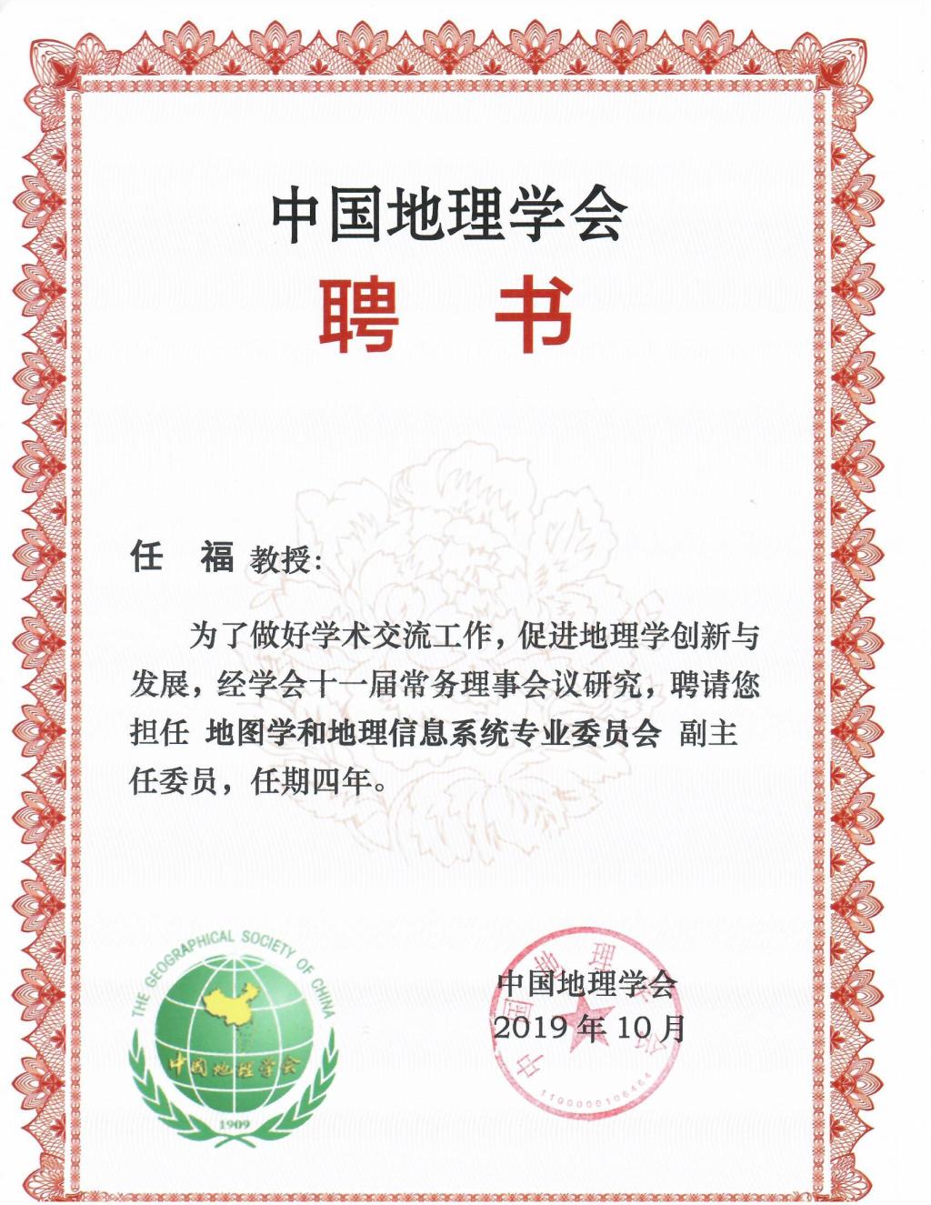 近期,色情直播app 任福教授被中国地理学会聘为中国地理学会地图学与地理信息系统专业委员会副主任委员,任期四年。