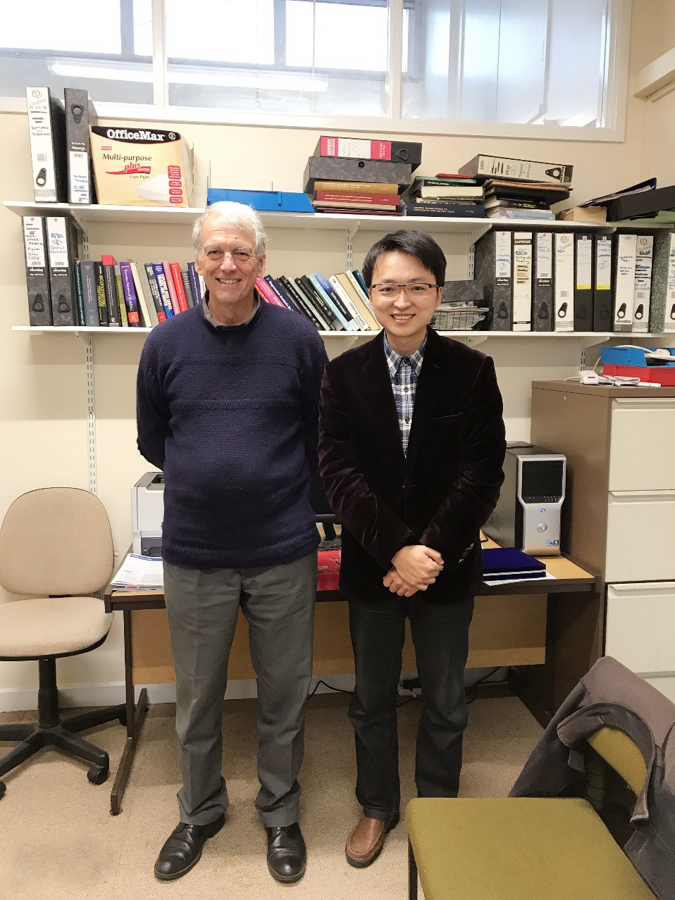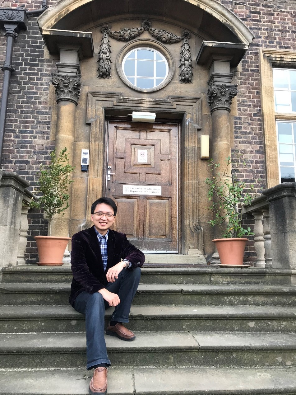 (左:陈奕云博士在剑桥大学地理系 右:陈奕云博士在剑桥大学地理系和Haining教授合影)