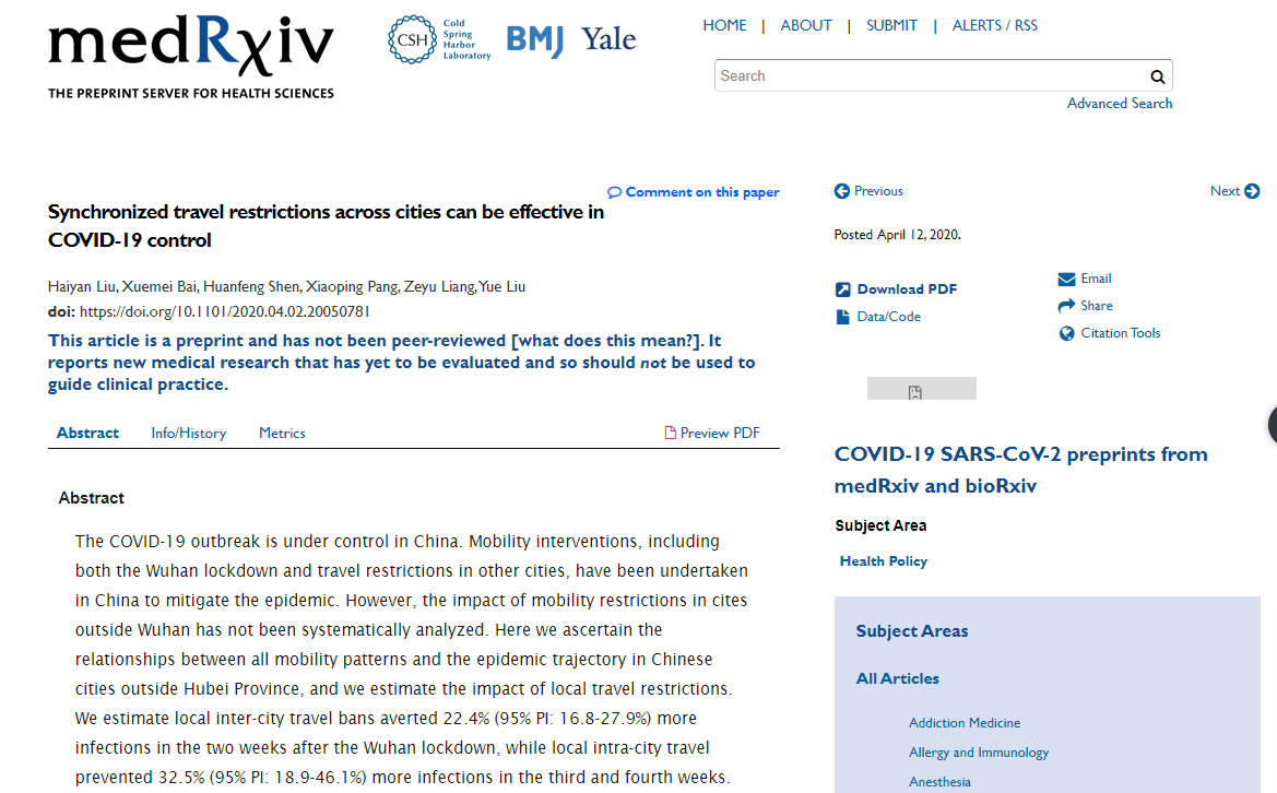 图1-2 刘海燕博士、沈焕锋教授发表城市尺度人口流动模式和疫情传播关系的论文