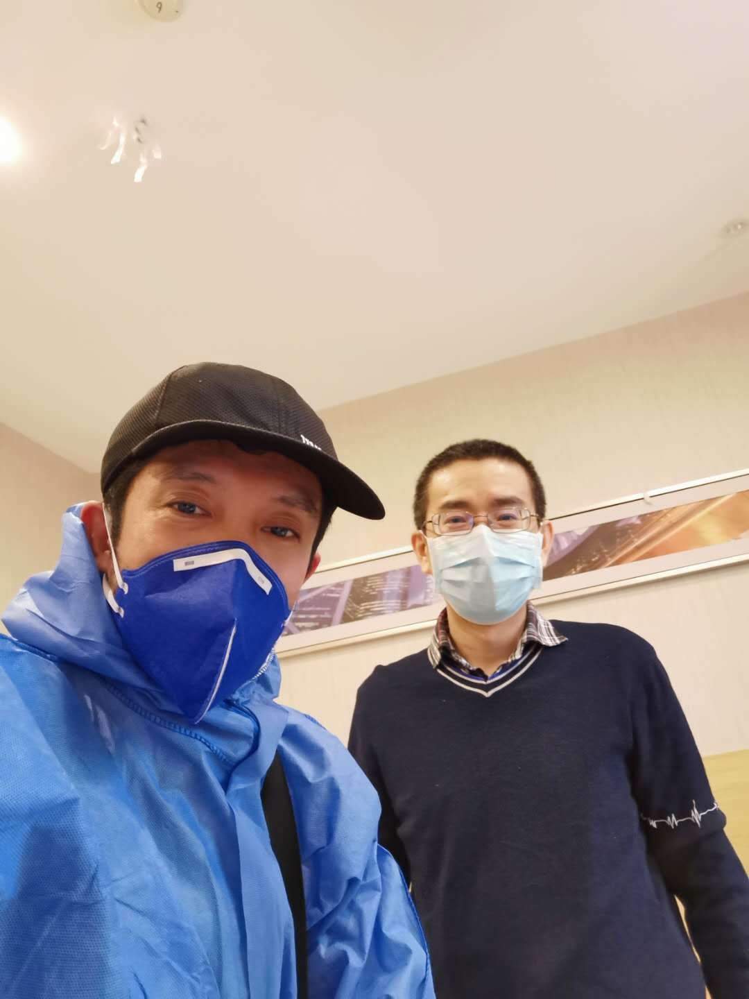 图4-1 高峰老师看望援鄂医生代表哈医大附属二院第四党支部书记康鹏