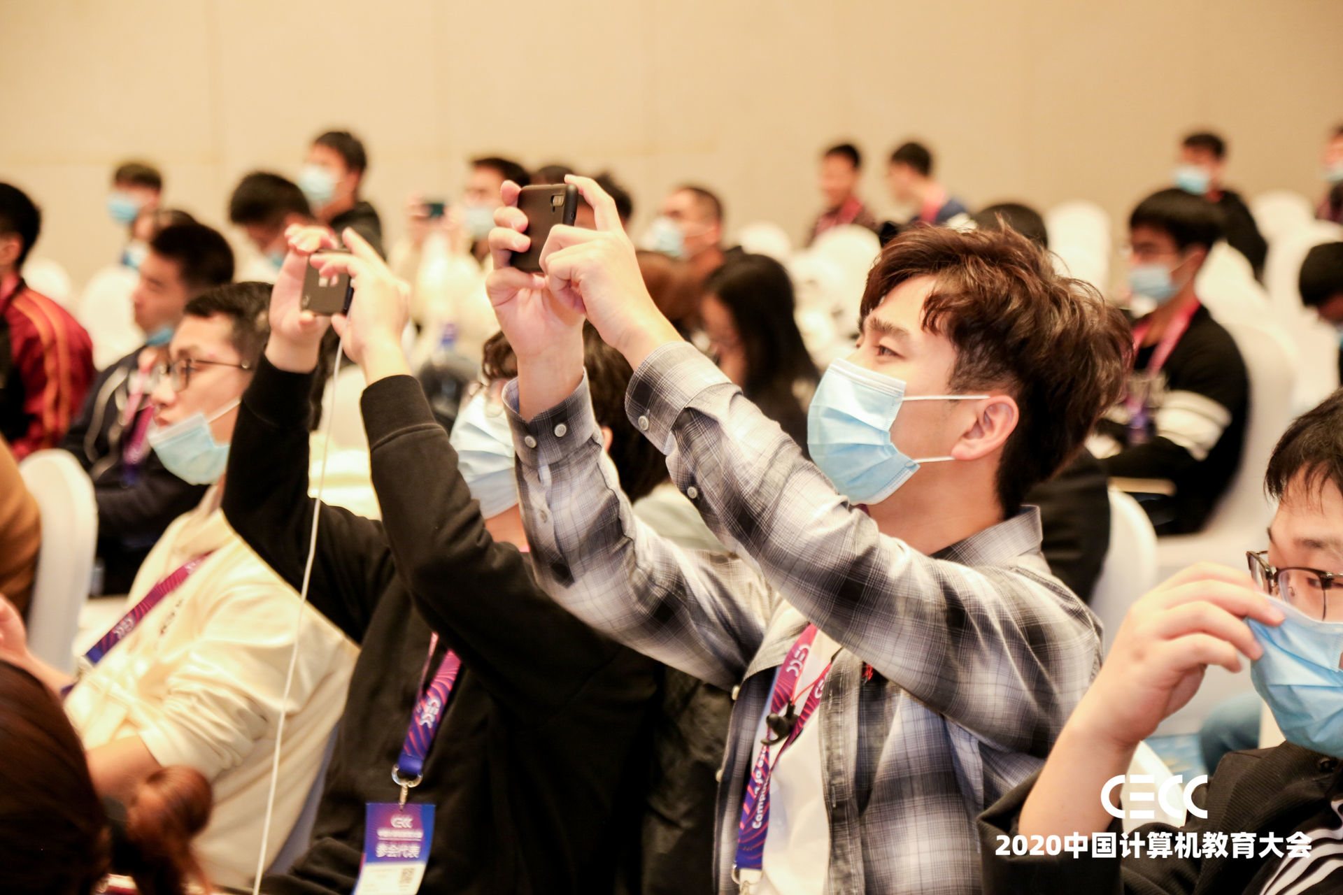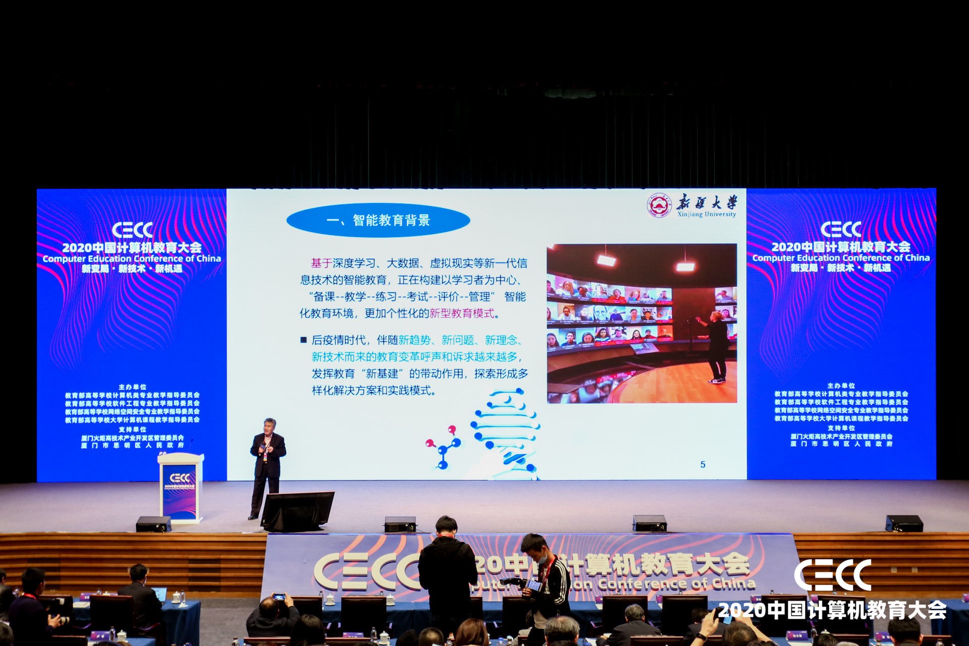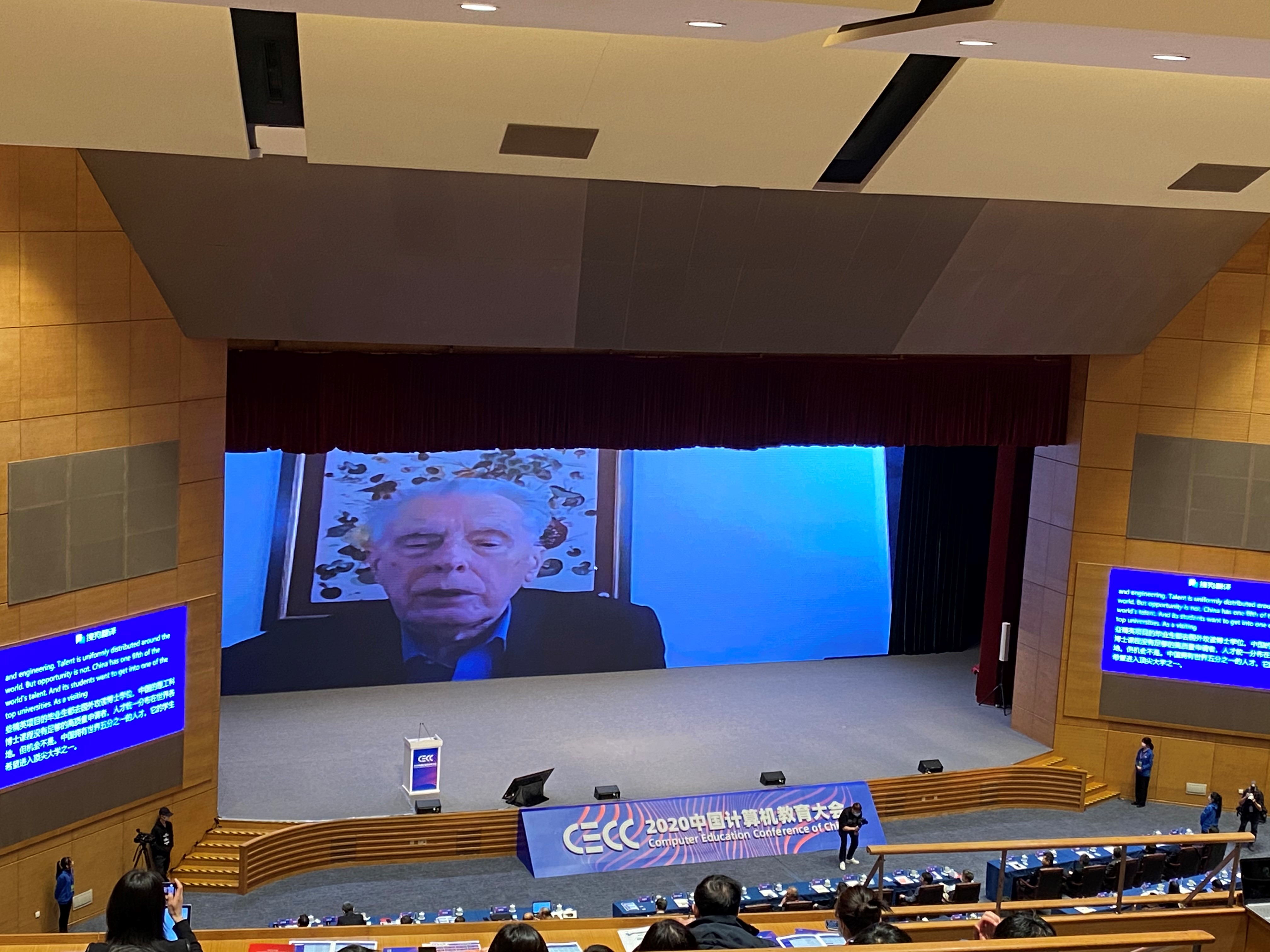 12月19日,参会团体到主会场观摩学习。会议过程中有众多计算机领域知名专家学者和企业从业者介绍了计算机科学与技术在过去几年所取得的卓越成就以及当前所面临的重大挑战和机遇。图灵奖得主John Hopcroft教授也在会议中通过视频的方式在线讨论了高校计算机科学与技术专业的教育问题。