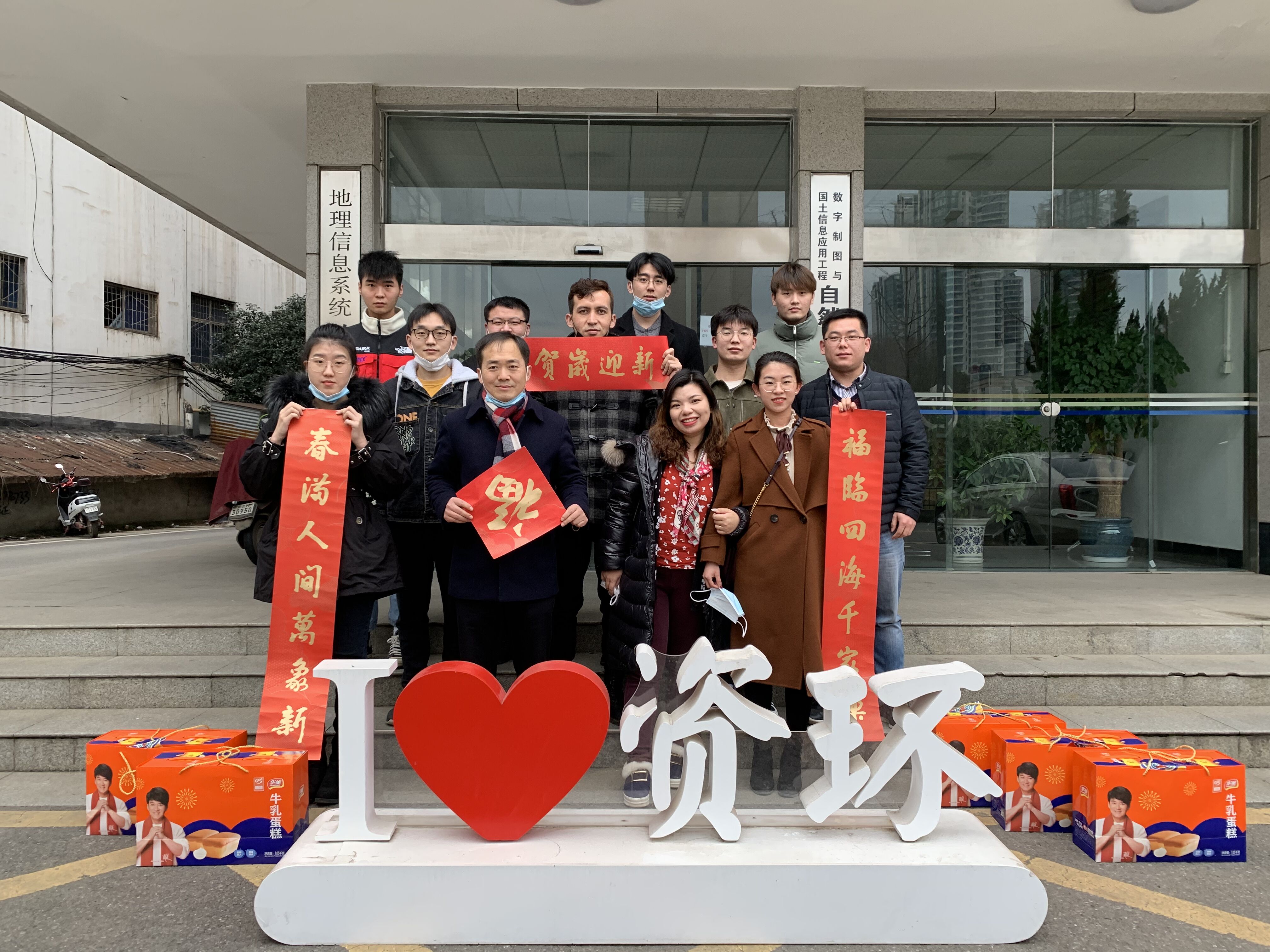 金牛报春,温暖而至。2021年2月10日下午,受色情直播app 党委书记刘兴国和院长杜清运的委托,色情直播app党委副书记雷起宏、研究生辅导员梅菲前往色情直播app实验室,走访慰问了寒假留校过年的同学们,并为其发放了新年慰问礼包和防疫物资。