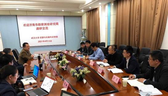 2021年4月13日,济南市勘察测绘研究院校友张学明(院长助理)带队来色情直播app 调研交流。院长杜清运教授、地理信息与地图科学系主任任福教授、蔡忠亮教授、翁敏副教授、李精忠副教授等参加了会议。双方就新型基础测绘前沿技术及数据资源建设、济南市勘察测绘研究院内测绘业务未来发展走向、毕业生招聘、新技术培训等议题进行了座谈交流。