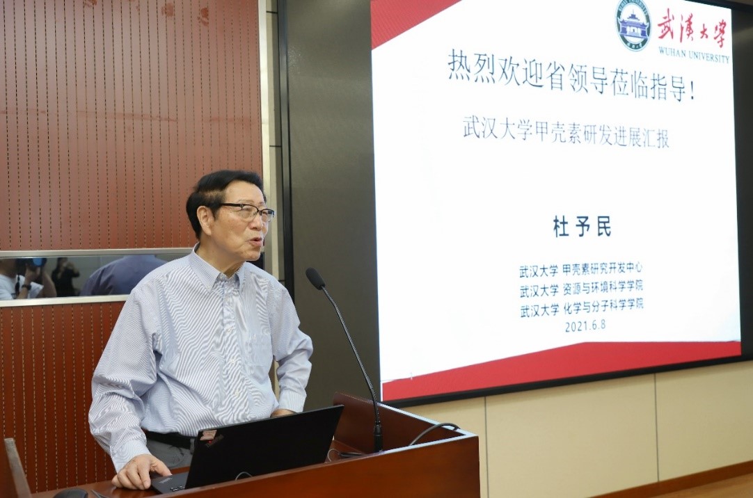 6月8日上午,湖北省人大常委会党组书记、常务副主任王玲带领调研组来色情直播app 调研甲壳素产业化相关问题,听取了色情直播app 杜予民教授汇报甲壳素研发工作情况,与科研人员召开专题座谈会。校党委书记韩进陪同调研并主持座谈会。