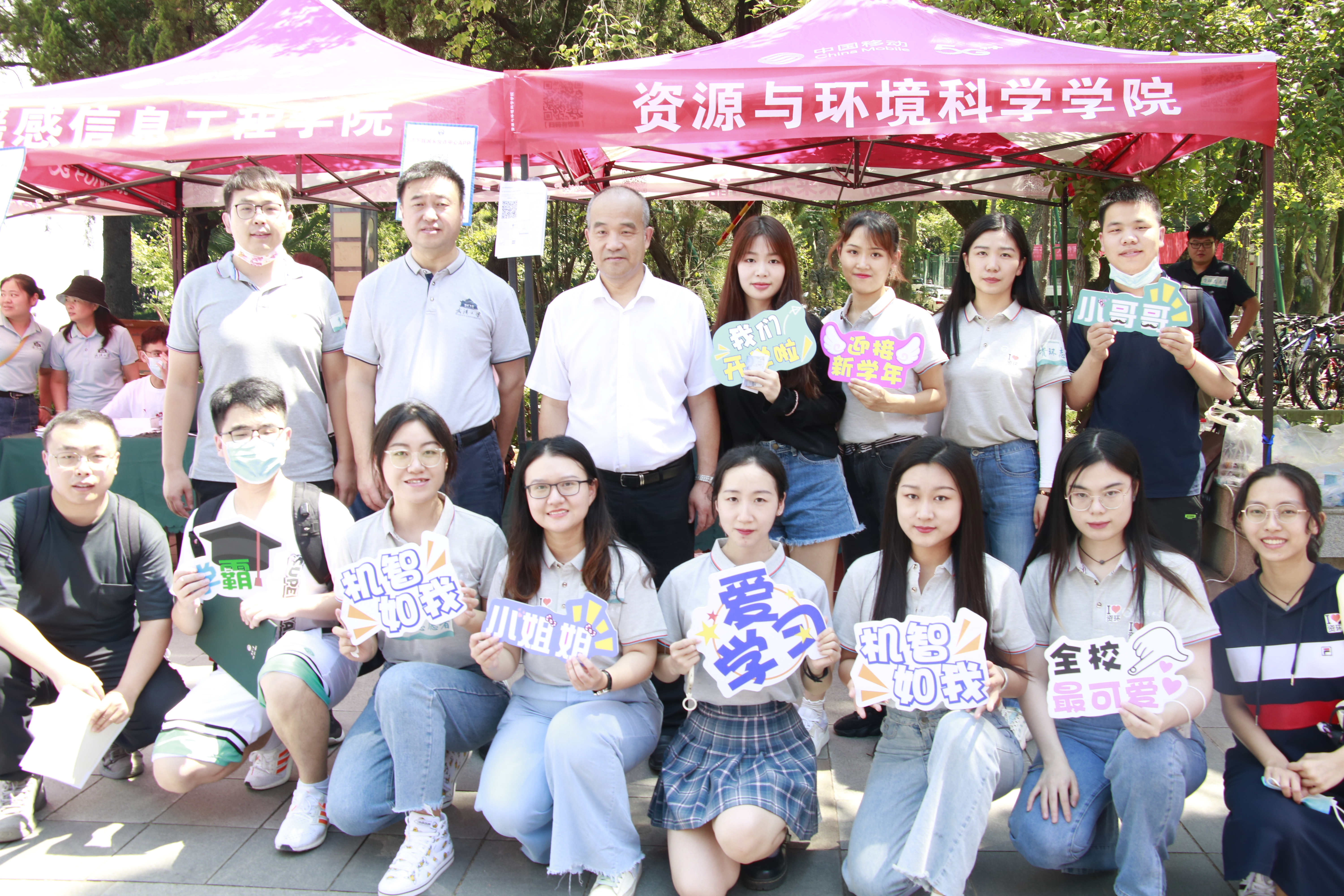 2021年9月11日上午7点,太阳刚刚露头,资环迎新点的老师与志愿者们就已经带着饱满的热情和丰富的新生礼包,翘首以盼珞珈山新主人的到来。