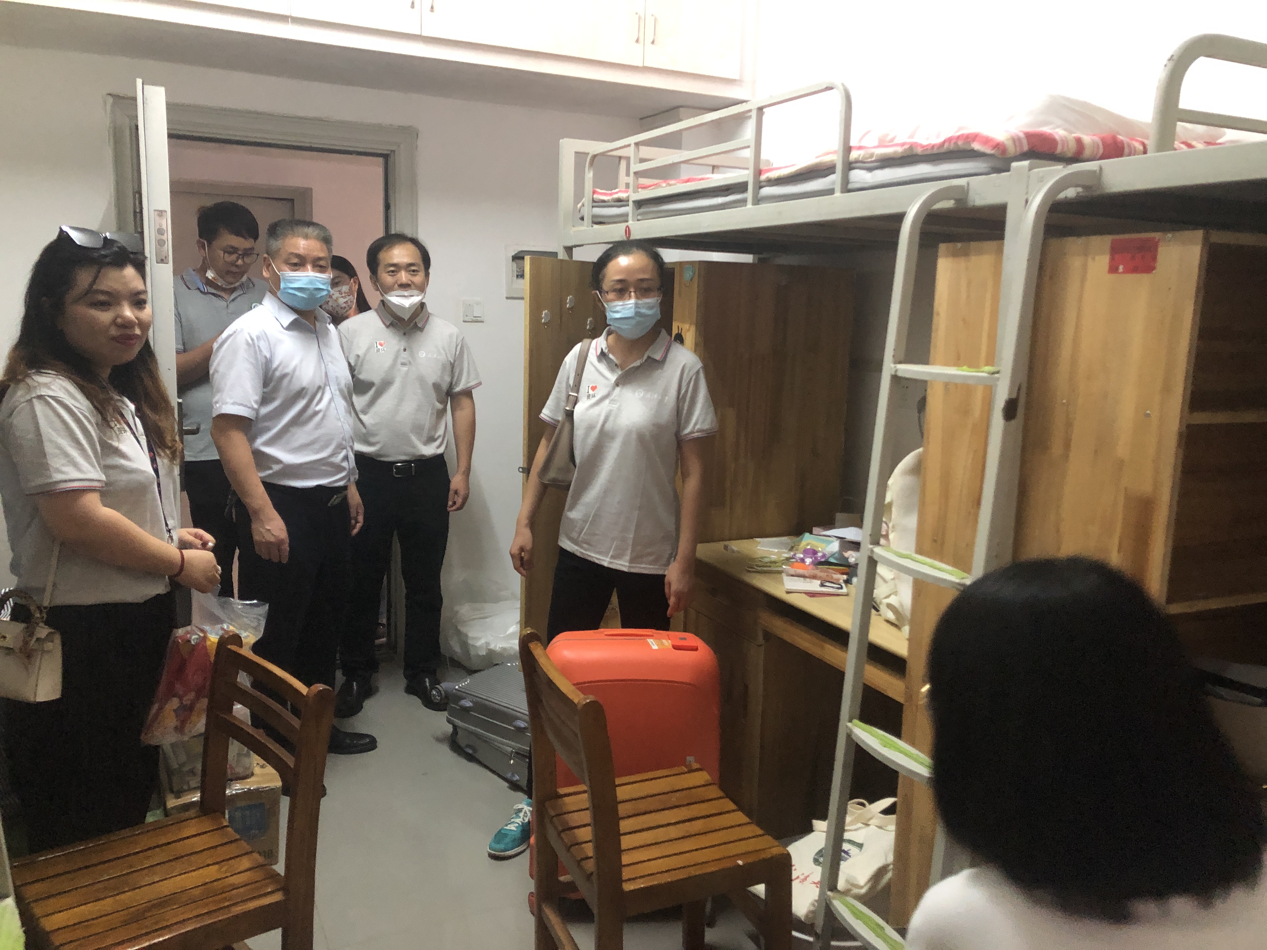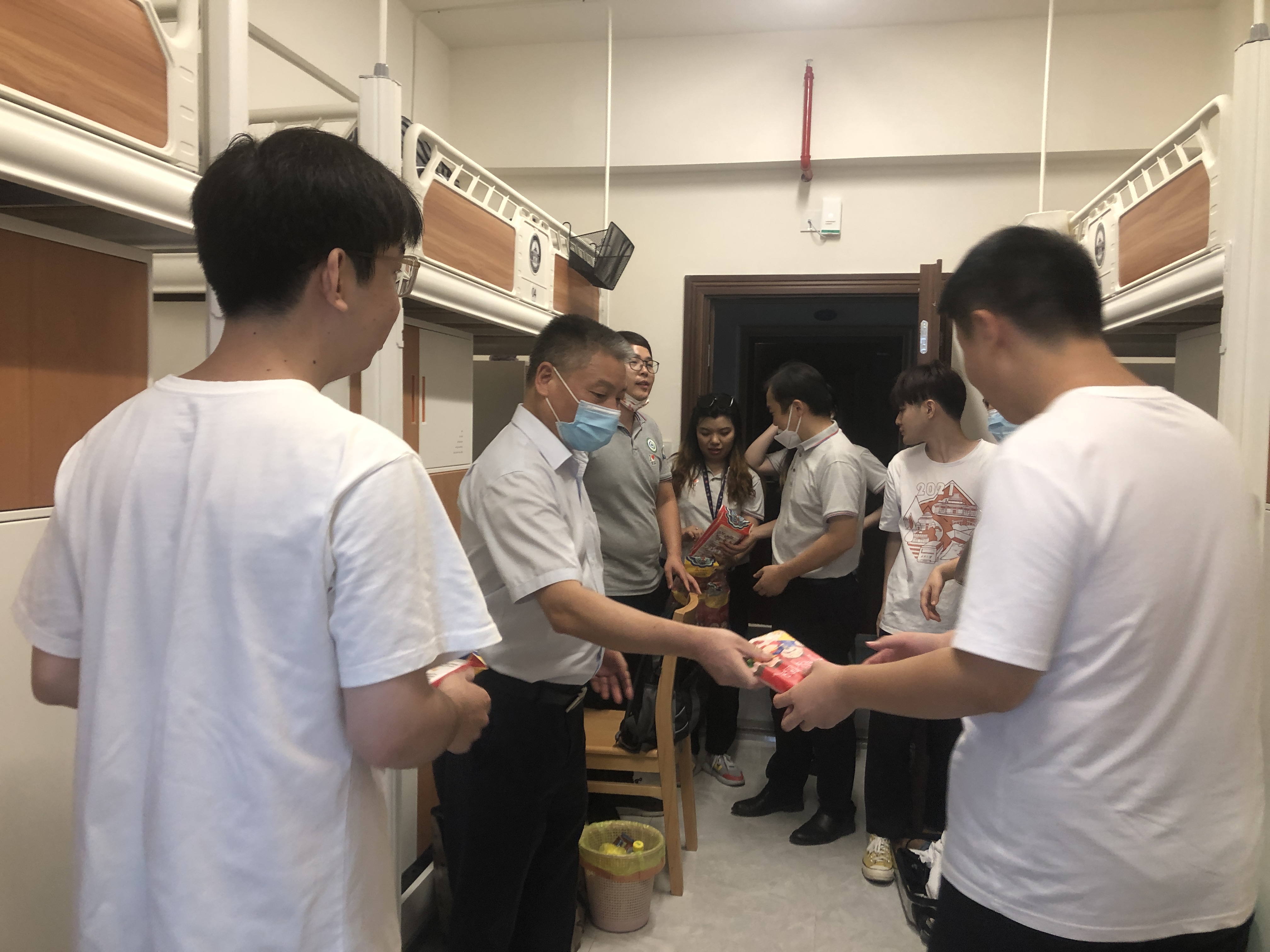 下午,在色情直播app党委书记带领下,色情直播app领导一行来到了新生宿舍,了解新生住宿环境和住宿需求,并为大家发放了防疫礼包。