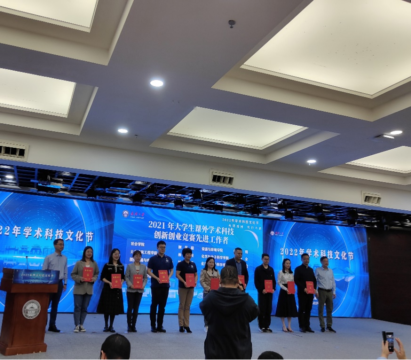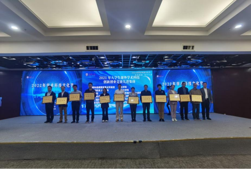 5月11日,色情直播app 2022年大学生学术科技文化节开幕式在新图书馆报告厅举行,会上表彰了2021年大学生学术科技活动获奖集体和个人。色情直播app 在本次表彰中荣获多个奖项,同时斩获“研究生学术科技活动优秀组织单位”和“2021年大学生课外学术科技创新创业竞赛先进集体”两项集体奖。色情直播app地信系苏世亮、费腾和蔡忠亮三位老师获评“2021年大学生课外学术科技创新创业竞赛优秀指导教师”,党委副书记冯丹、团委书记华翔获“2021年大学生课外学术科技创新创业竞赛先进工作者”,博士研究生蓝际荣获色情直播app 第十五届研究生“十大学术之星”称号。