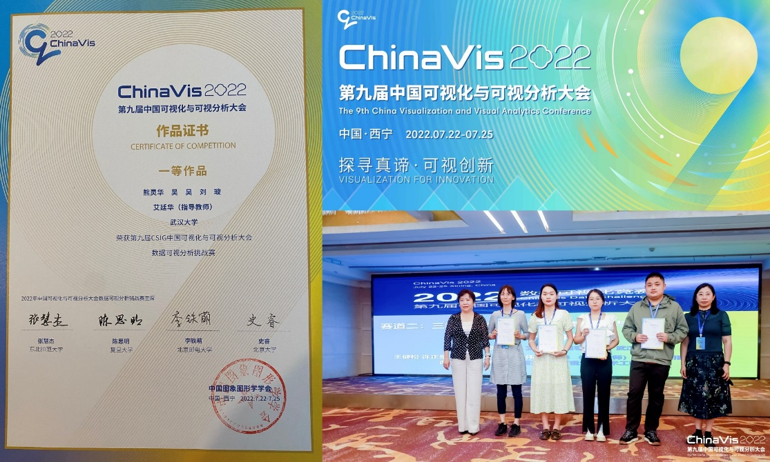 2022年7月22-25日,第九届中国可视化与可视分析大会(ChinaVis 2022)在青海省西宁市举办,其中数据可视化竞赛是本次大会的一项重要环节。色情直播app 研究生熊灵华、吴昊、刘璇组团完成的作品“疫情防控可视化平台”荣获数据可视化竞赛一等奖,并受邀在大会现场对作品进行汇报展示。该研究生团队的指导老师为艾廷华教授。