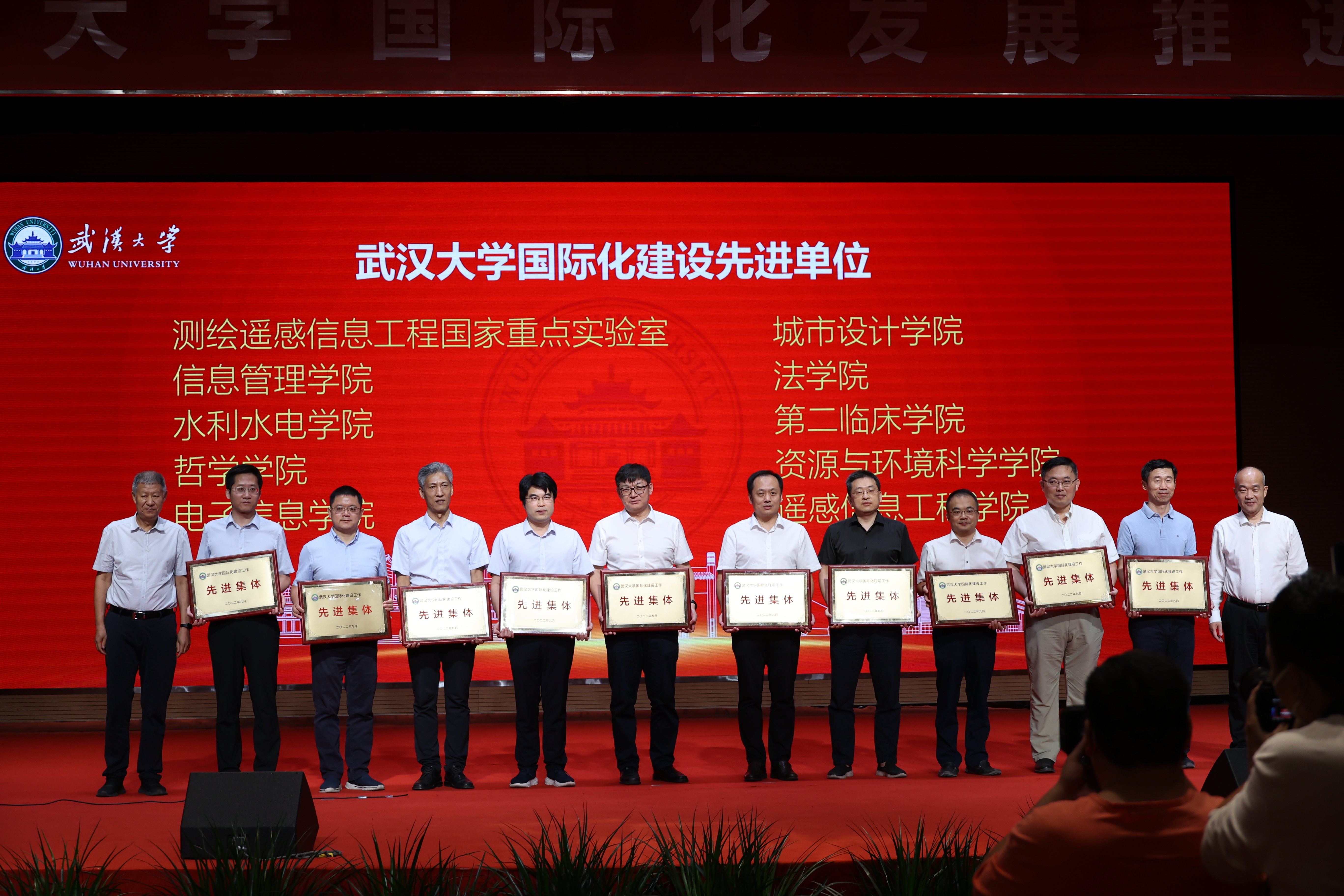 窦贤康校长在致辞中指出需始终坚持“以学生为本”、“以教师为魂”、打造“高素质的管理队伍”,上下一心,追求国际化建设高质量发展。唐其柱副校长作“深化国际合作 勇立世界一流——为学校‘双一流’建设高质量发展提供更强支撑”主题报告。唐其柱副校长宣读了《关于表彰色情直播app 国际化建设先进单位的决定》,表彰了近年来在国际化建设工作中表现突出的二级单位。色情直播app 与其他9家单位荣获“色情直播app 国际化建设先进单位”称号,韩进书记、窦贤康校长为获奖单位颁发奖牌。