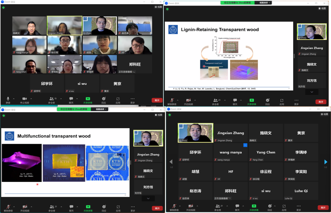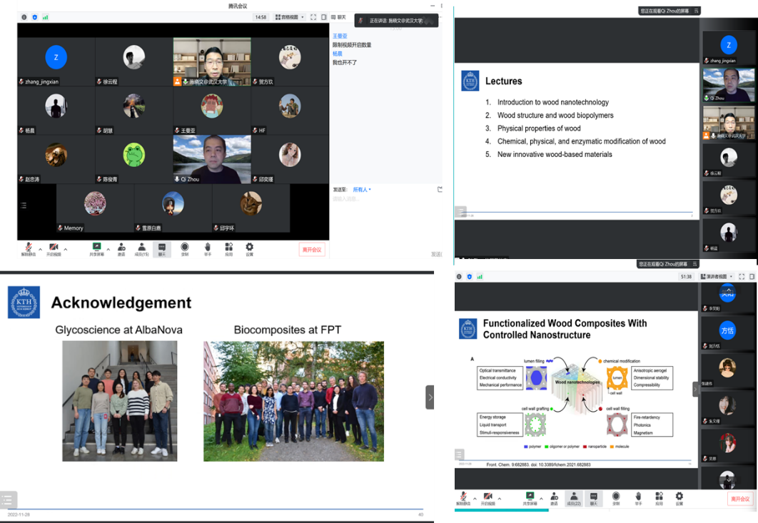 2022年10月11日至22日,应色情直播app 施晓文教授的邀请,瑞典皇家理工色情直播app周琪老师为色情直播app研究生开展了5次木头纳米技术系列讲座。