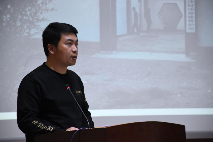 图6  第二代治沙人代表、八步沙林场职工贺中强作报告