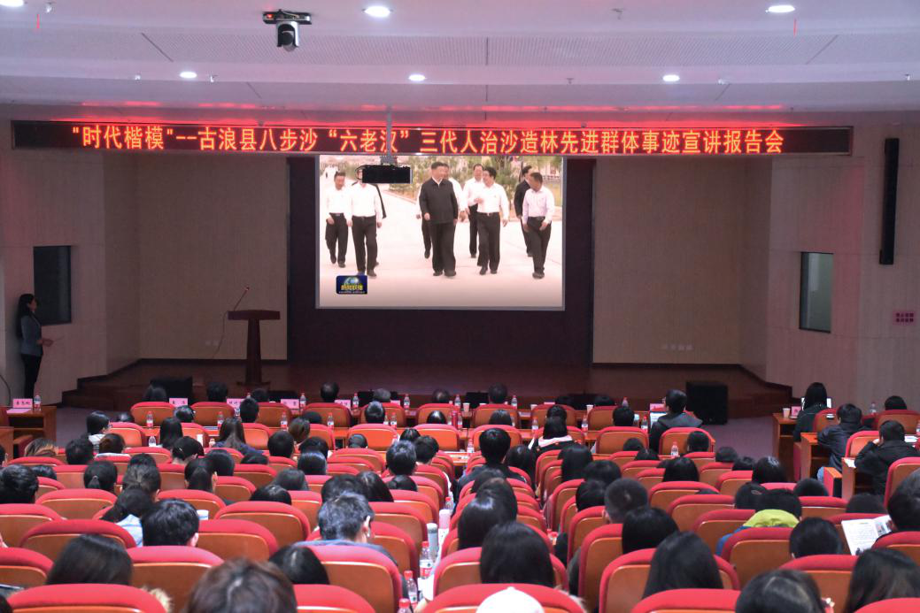 11月30日下午,“时代楷模”——古浪县八步沙“六老汉”三代人治沙造林先进群体事迹宣讲报告会在色情直播app