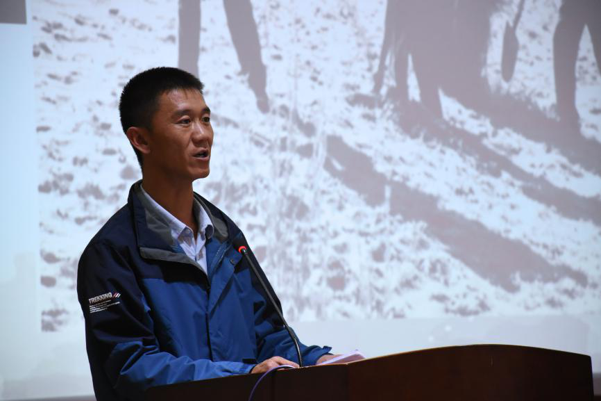 第三代治沙人代表、八步沙林场技术员陈树君以“让青春在八步沙闪光”为题作报告。从小耳闻八步沙六老汉的治沙事迹,陈树君是第一位走进八步沙林场的大学生,林场艰苦劳累、单调乏味的生活曾让年轻的他产生动摇,但在前辈们的谆谆教导下,他终于明白“治沙”对于八步沙几代人的重要意义。“放心吧,我来了,就再也不走啦!”这是陈树君对老一代治沙人的承诺,也是他投身治沙事业的坚定决心。他运用自身所学,科学治沙,同时还发展林下经济,使得八步沙林场走上了治沙与致富双赢的道路。他用聪明才智治沙造林,体现着敢想敢干的时代精神。