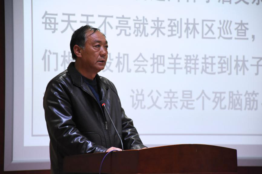 图7  第三代治沙人代表、八步沙林场管护员郭玺作报告