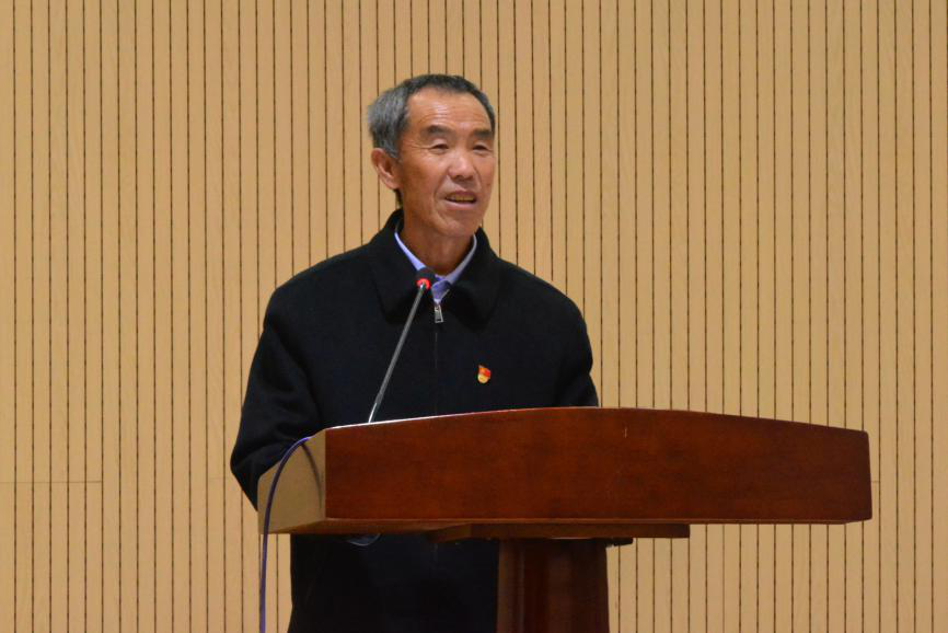 图5  第二代治沙人代表、八步沙林场场长郭万刚作报告