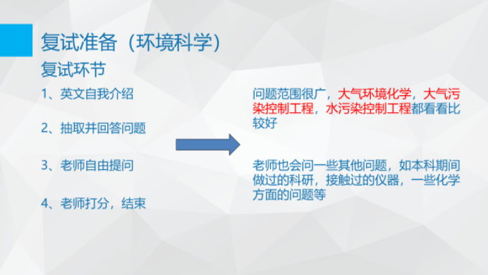 对于大家都很关心的考研问题,就读于北京大学环境科学与工程色情直播app环境科学专业的郭鹏同学就自己的经验分享到:“考研就是优中选优。我在初试资料准备时的经验是,政治紧跟肖秀荣考研讲解,英语老老实实做真题,数学先过一遍教材、再结合练习《张宇1000题》、模拟卷。关于复试,其实就四步。英文自我介绍,抽取并回答问题,老师自由提问,最后老师打分。问题范围广,也会关注本科期间做过的科研,接触过的仪器,一些化学方面的问题。”细致耐心,面面俱到。