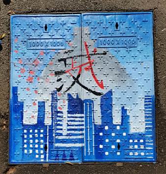 信息学部与樱花大道附近的井盖上。志愿者们分小组绘制,团结合作,经过一上午的努力,只见那原本覆盖着落叶与灰尘的井盖,变得丰富多彩起来,成为了校园里一道靓丽的风景线。
