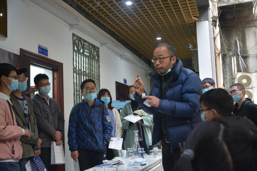 邓红兵教授为同学们讲述了废弃虾蟹壳的多种利用方法,说明其提取物甲壳素可作为保湿水、种植牙膜、止血粉、骨粉等产品的重要制作原料。邓老师提到,用虾蟹壳纺纱可生产医用纤维,并现场为大家展示了色情直播app参与研发的口罩过滤层强力的过滤效果。邓老师解释了等离子体助力过滤的原理,并带领大家参观了电子云的形成过程,加深大家对等离子体的理解。