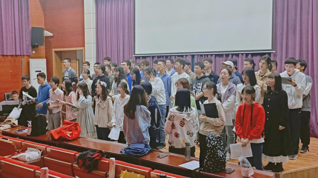 在备战金秋的过程中,寰宇合唱团的团员相互鼓励,在美妙的歌声中共同成长。他们秉持对音乐的赤诚热爱,共同在音乐的道路上摸索前行。比赛在即,合唱团的团员们互相打气,团长也对他们给予了衷心的祝愿:“我真心希望他们在寰宇可以真正感受到音乐的快乐,在金秋的舞台上绽放耀眼的光芒,他们的努力也一定会使寰宇成为最亮丽的底色。”