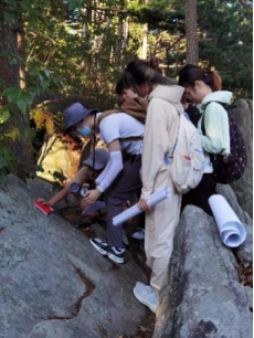 读万卷书,行万里路。游览庐山胜景陶冶情操的同时,也提升了同学们的专业素养,沿山路行走观察阶梯式断层、挖取土壤剖面观察土壤分层、树林间设置样方采集标本、用脚步丈量地形图上的五岭四谷、用罗盘测量岩层产状……好汉坡、石门涧、五老峰、三叠泉,每日清晨如琴湖饭店整装待发,傍晚归来收获满满,师生们顶着烈日,不畏山高坡陡路途遥远,既培养了吃苦耐劳的精神,也收获了彼此之间的团结友爱。除了专业学习之外,师生们还借助庐山的红色文化,积极开展思政教育学习,爱国爱党精神植根心中。