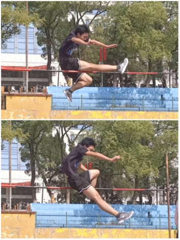 与径赛同时进行的还有跳高跳远。跳高比赛中,运动员竞争激烈,前面的高度大家都准备充分,胸有成竹,助跑,跃起,平稳落地,一气呵成。当高度上升到130cm时,比赛逐渐紧张起来,陆续有失误的同学遗憾结束比赛,但他们同样展现着资环学子向新的高度出发时勇敢无畏的矫健身姿。高度继续攀升,当来到140cm时,仅剩两人角逐,两位同学在竞争中也在携手挑战自我。你争我夺,斗志昂扬,最终冠军诞生,但每一位在赛场上拼搏的健儿都做到了磨砺锋芒,放飞理想。