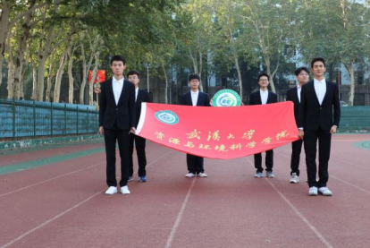 主持人介绍完毕,各方阵有序入场。走在最前面的是院旗院徽代表队,六位同学着装正式,精神饱满,步伐铿锵有力,带着彰显资环特色的独特标志率先入场。紧接着是各联队方阵,整齐的步伐与富有个性的介绍词,彰显出各班班级文化的丰富与多元,也展现了资环学子良好的精神风貌。