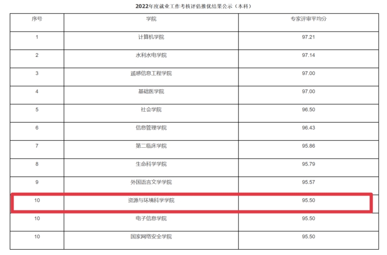 本科生就业工作在全校本科生培养单位中并列第十,获评A等。