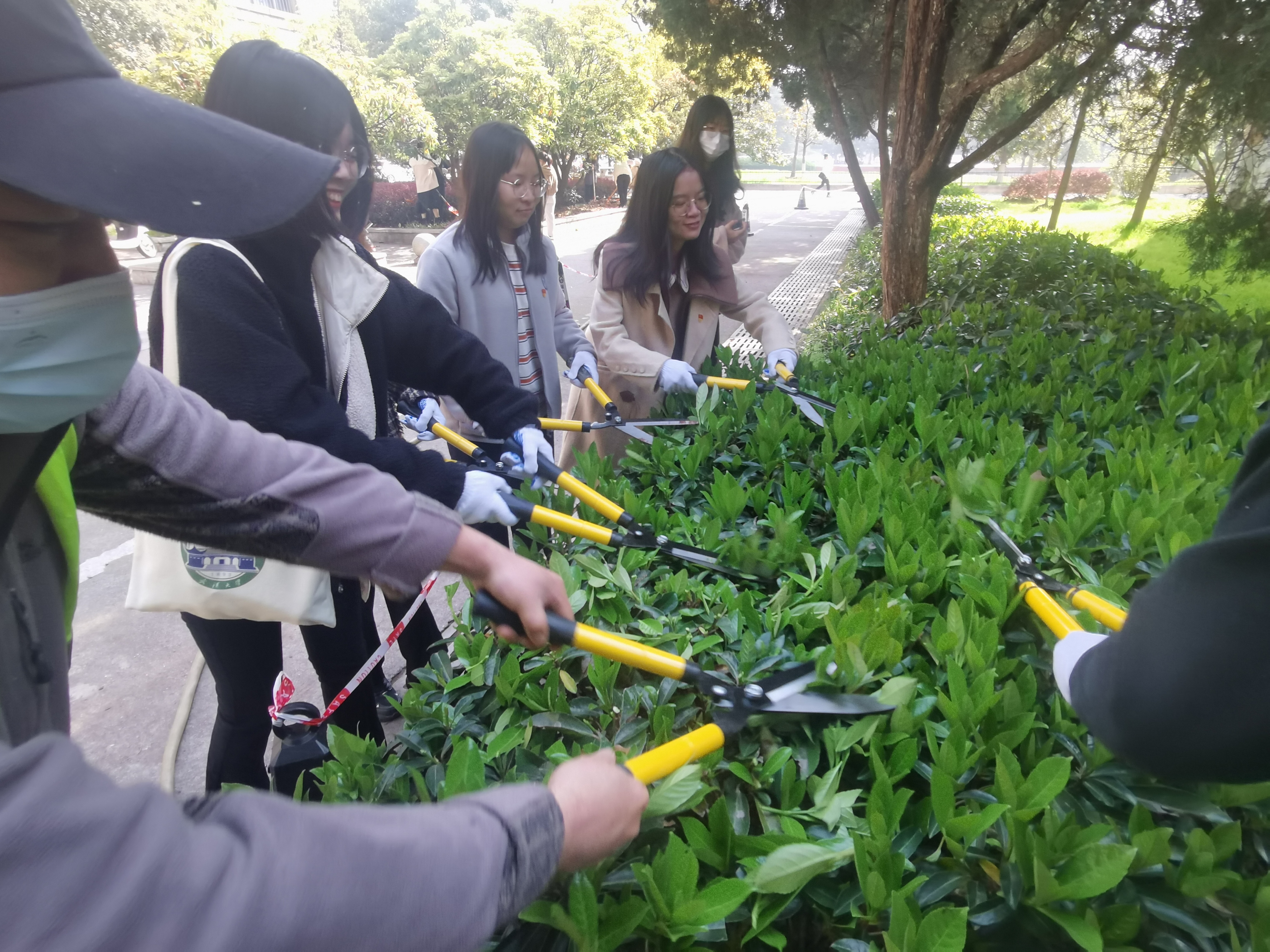 图7 学生党员在修剪树叶