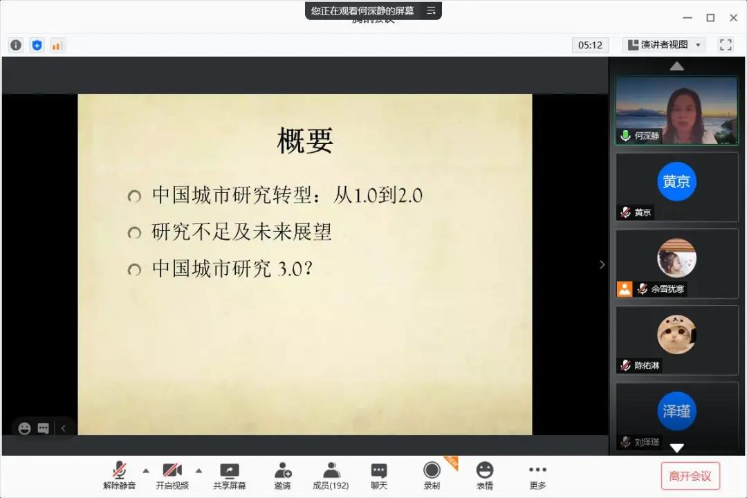 第八讲是由香港大学何深静教授带来的题为“改革开放以来的中国城市研究进展”的讲座。何教授从勾勒中国城市研究领域认识推进的全貌、指出现有城市热点主题研究的缺口及可能出成果的方向、分享《Urban Studies》期刊发表要求、审稿过程等方面展开了精彩的报告。何教授介绍了不同阶段的城市化相关热点议题,包括以实证主义为主导的城市研究1.0阶段、侧重城市主义的城市研究2.0阶段,并指出中国城市研究必须塑造形成自己的范式,加深了同学们对城市研究的理解与思考。