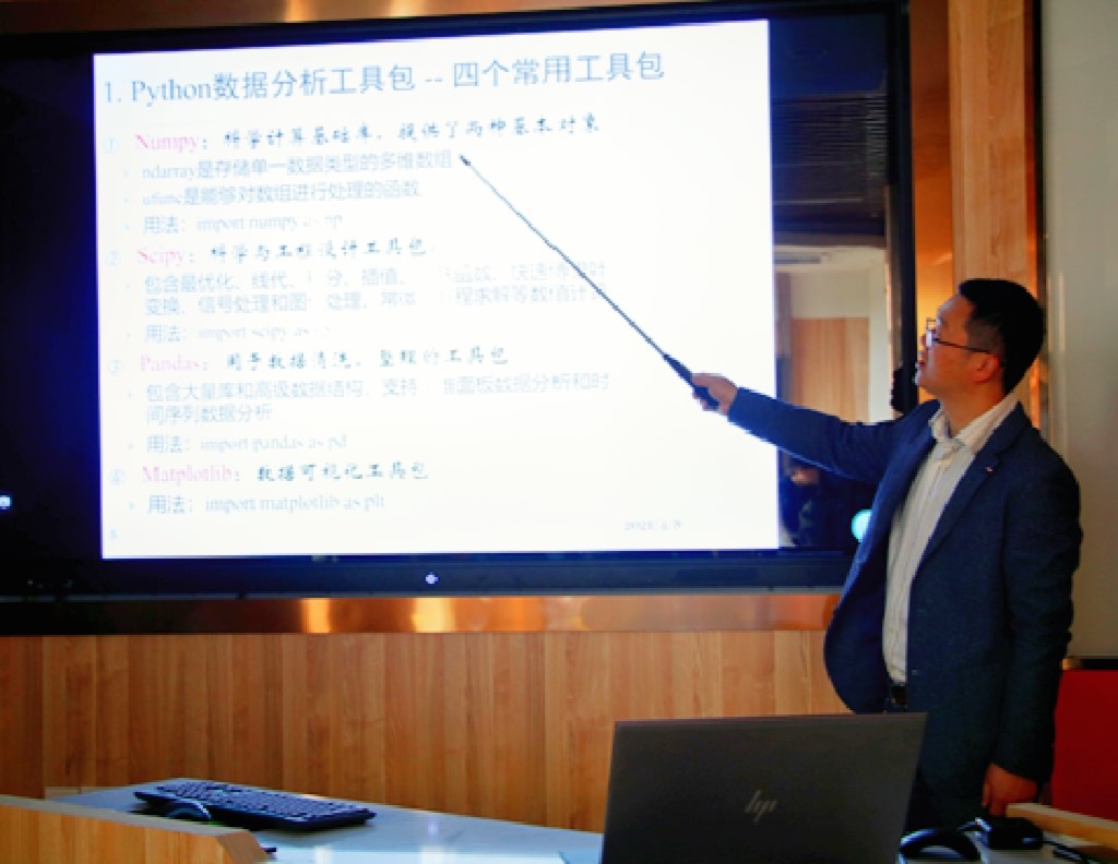 随后,地理信息与地图科学系万幼老师带来了第一课——Python语言的常用地理处理业务专题培训。万老师从环境搭建开始展开了细致的讲解,包括修改环境变量配置、查看已有安装包等等。在此基础上又为大家介绍了python数据分析的四个常用工具包以及常见的数据结构。