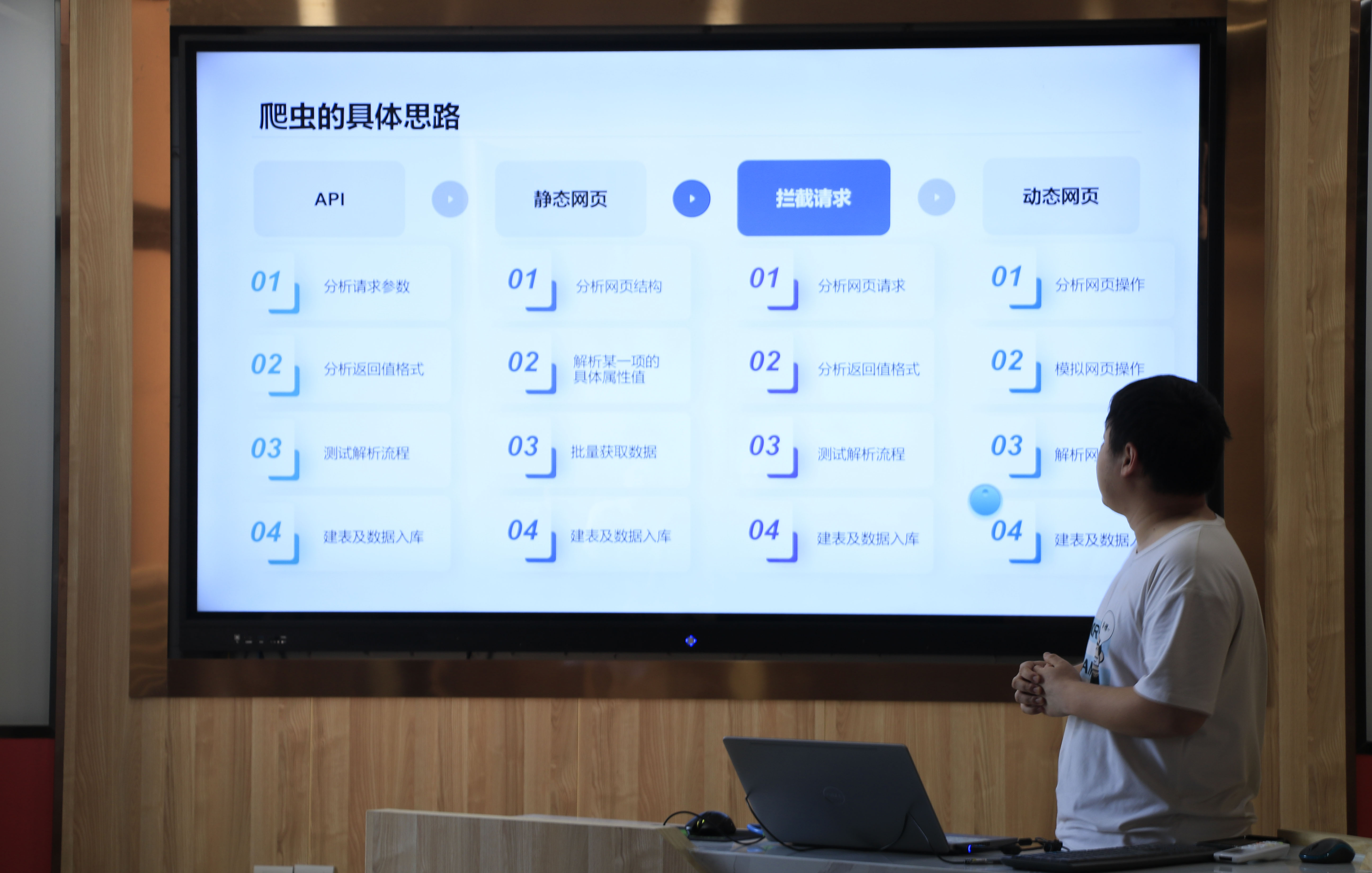 课程第三部分为爬虫框架介绍。在此部分主讲人向同学们介绍了request、BeautifulSoup4、Selenium三种方法。Request主要通过header与proxies参数限制请求与登录IP。BeautifulSoup4为从HTML或XML文件中提取数据的Python库,可以帮助解析标签与获取数据。Selenium可以模拟人的点击与滚动事件,是爬取动态页面的重要方法。