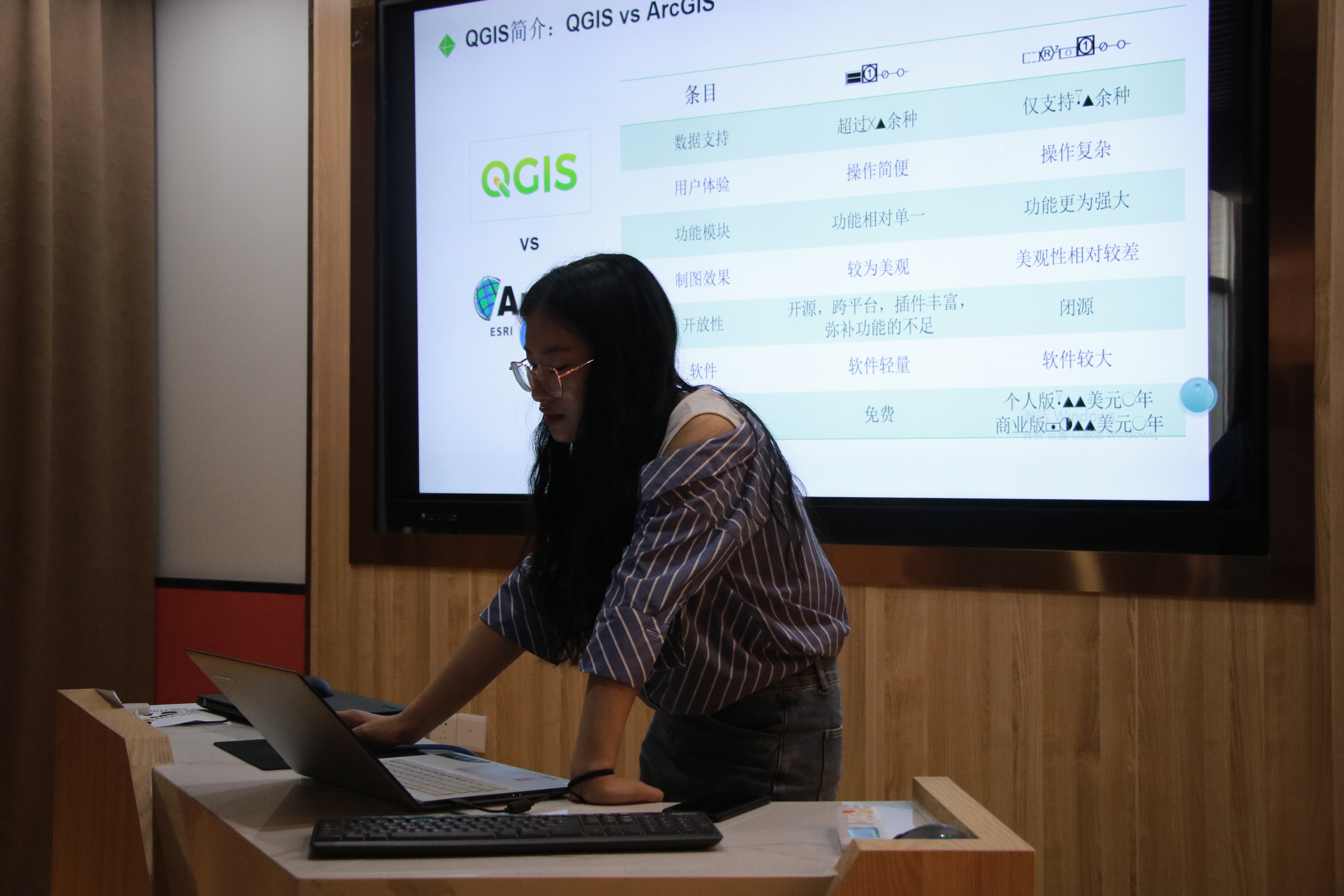研究生会主办的工程实践案例交流坊第三课在院办415会议室顺利举办来。来自地图学与地理信息系统专业的硕士研究生刘越同学就QGIS的数据处理、空间分析与可视化等内容为大家带来一场精彩纷呈的培训讲座。