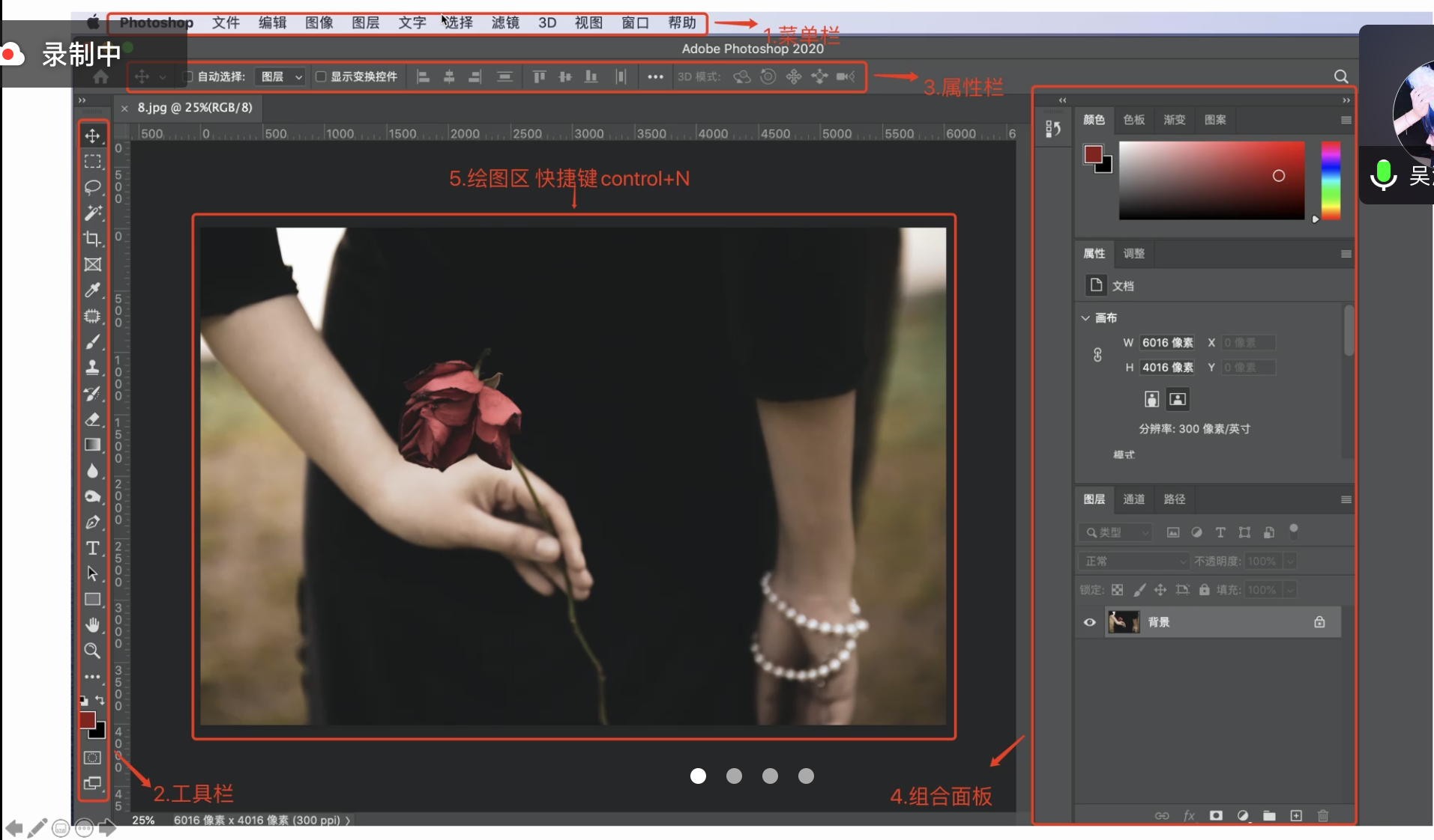 第二部分吴浩甜同学结合软件和PPT带大家熟悉了PS的工作界面,PS的界面由菜单栏、工具栏、属性栏、组合面板和绘图区五部分组成。同时,嘉宾还一一介绍了各个栏目里的工具用途和常用的快捷键。并且结合PS软件和图片素材为我们演示了移动工具、选框工具、套索工具、快速选择工具、吸管工具、画笔工具、仿制图章工具这些常用工具的用法和效果。