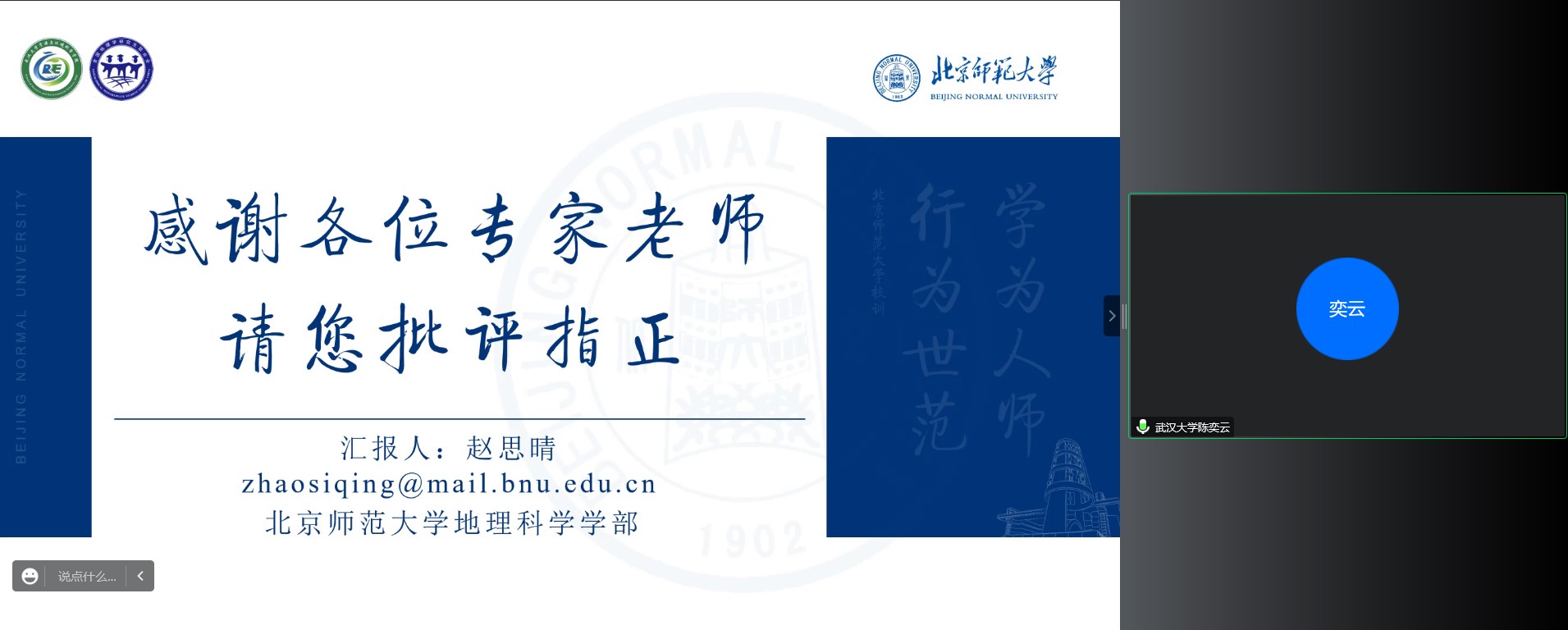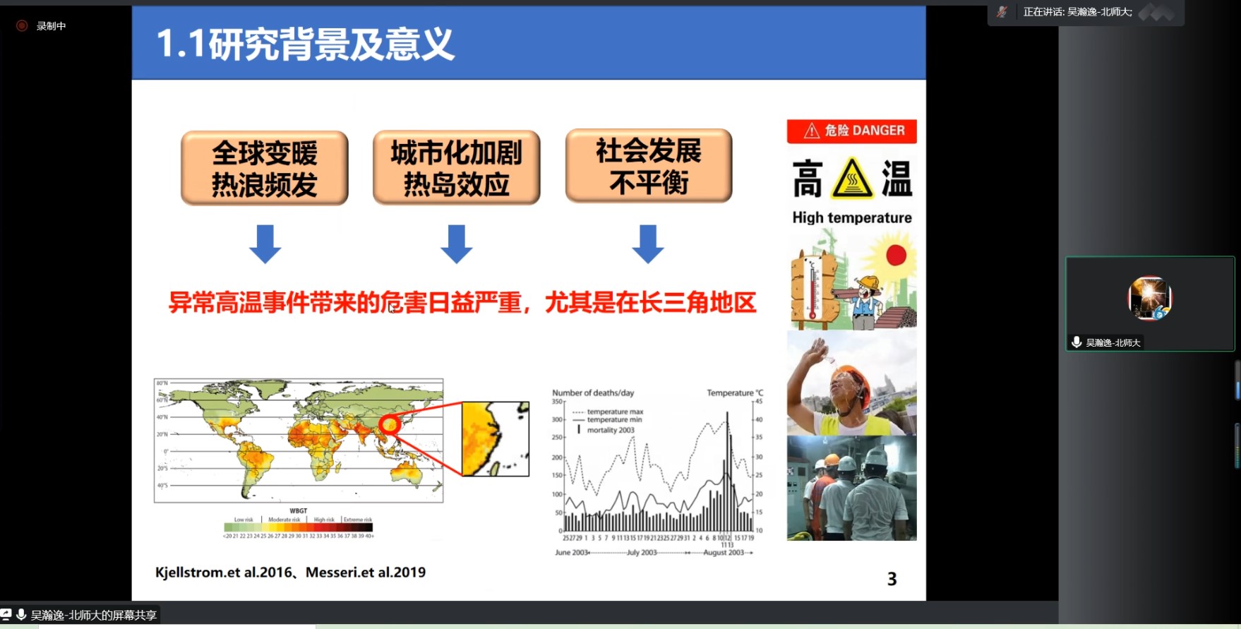 测绘遥感信息工程国家重点实验室的郭昊南同学针对复杂城市场景内建筑物存在语义差异的问题,提出了场景驱动的多任务建筑物提取网络框架;郑州大学地球科学与技术色情直播app的李红丽同学,李同学首先对研究的背景及意义进行阐述,而后对FY-4A/AGRI传感器可见光-近红外波段的交叉定标流程及研究结果进行介绍;最后一位分享嘉宾为北京师范大学地理科学学部的吴瀚逸同学,吴同学构建了“危险-暴露-脆弱”高温风险综合评估框架,并进行高温风险主导因子分析,分析得到长三角地区高温风险具有显著空间差异性以及高温风险的主导模式。