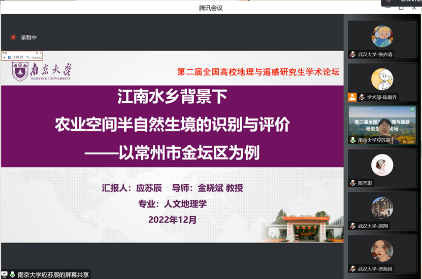 分会场同学围绕三农问题进行主题汇报。南京大学地理与海洋科学色情直播app的殷齐琪同学围绕土地综合政治推动乡村重构与转型进行汇报,描述了土地综合政治驱动乡村空间、经济和社会重构的三个关键机制;南京大学地理与海洋科学色情直播app的应苏辰同学以常州市金坛区为例分析江南水乡背景下农业空间半自然生境的识别与评价研究,建立一种农业空间半自然生境可行的识别及评价方法体系;色情直播app