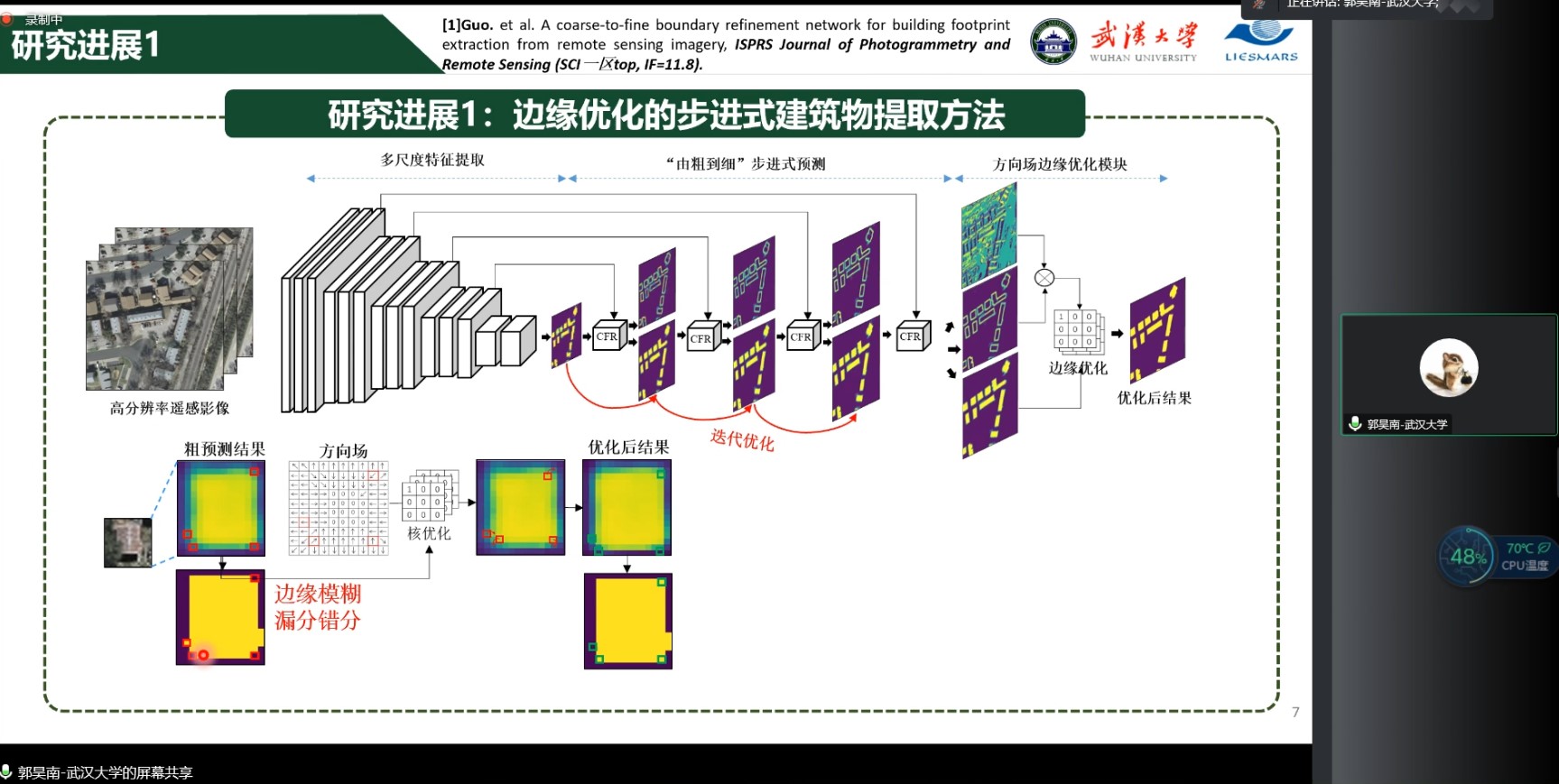遥感信息工程色情直播app的王立波同学从语义分割的概念介绍出发,介绍了现有研究的局限性,同时提出了基于Transformer的解码器,构建了U型Transformer网络用于城市场景的语义分割任务;色情直播app