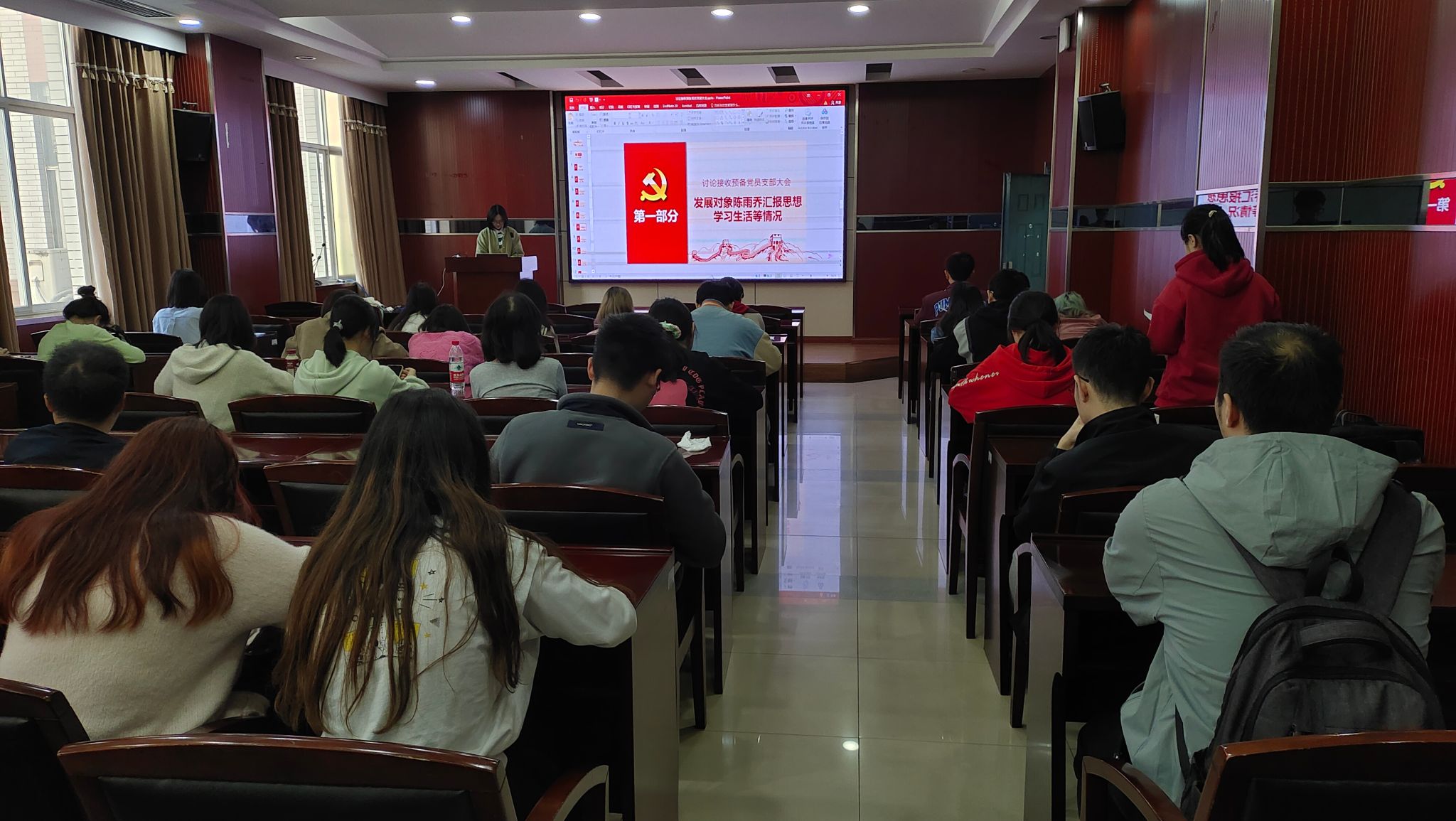 会议第三项,讨论接收预备党员。张旭同志、陈雨乔同志汇报了自己在积极分子与发展对象期间思想、生活与学习方面的收获与进步,阐明了自己进一步发展的意愿。张旭同志的入党介绍人廖成同志和牛羽庆同志介绍了其在积极分子考察阶段的表现,同意推荐其为预备党员;之后,江乐怡同志代表支部委员会报告审查情况,与会党员蒋子捷同志发表意见。陈雨乔同志的入党介绍人李克诚同志和廖成同志介绍了其在积极分子考察阶段的表现,同意推荐其为预备党员;之后,江乐怡同志代表支部委员会报告审查情况,与会党员牛羽庆同志发表意见。与会党员对张旭同志、陈雨乔同志是否符合党员条件进行充分讨论,并依次对发展对象能否入党进行无记名投票表决。最终收回26张表决票均同意接收张旭同志、陈雨乔同志成为预备党员,赞成票超过参与表决人数的一半,本次表决有效。