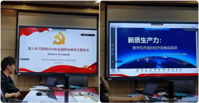 地理科学与国土资源系研究生第三党支部就两会的议程和政府工作报告的内容进行了重点学习;并针对两会出现的如“新质生产力”“新三样”“全国一体化算力体系”“人工智能+”等新名词进行了科普和解释;最后重温了中国共产党党徽党旗条例,强调了共产党员的信仰。