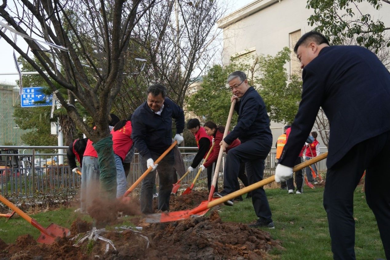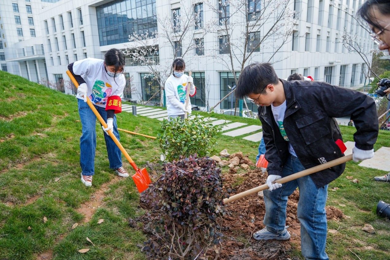 阳春三月万物苏,植树添绿正当时。为深入学习宣传贯彻习近平生态文明思想,牢固树立“绿水青山就是金山银山”理念,落实生态环境保护建设,提高校园绿化覆盖率,激发党员群众爱林造林热情,3月19日下午,环境科学与工程系研究生第一党支部成员作为学生志愿者参与了“植树添绿,共建美好‘珈’园”义务植树志愿活动。校党委书记黄泰岩、校长张平文等在校领导,部分机关职能部门干部,计算机色情直播app、测绘色情直播app教职工代表,以及学生志愿者等共计160余人共同参与。各院师生代表在雷军科技楼东北侧齐聚一堂,开展义务植树活动,为校园增添新绿。