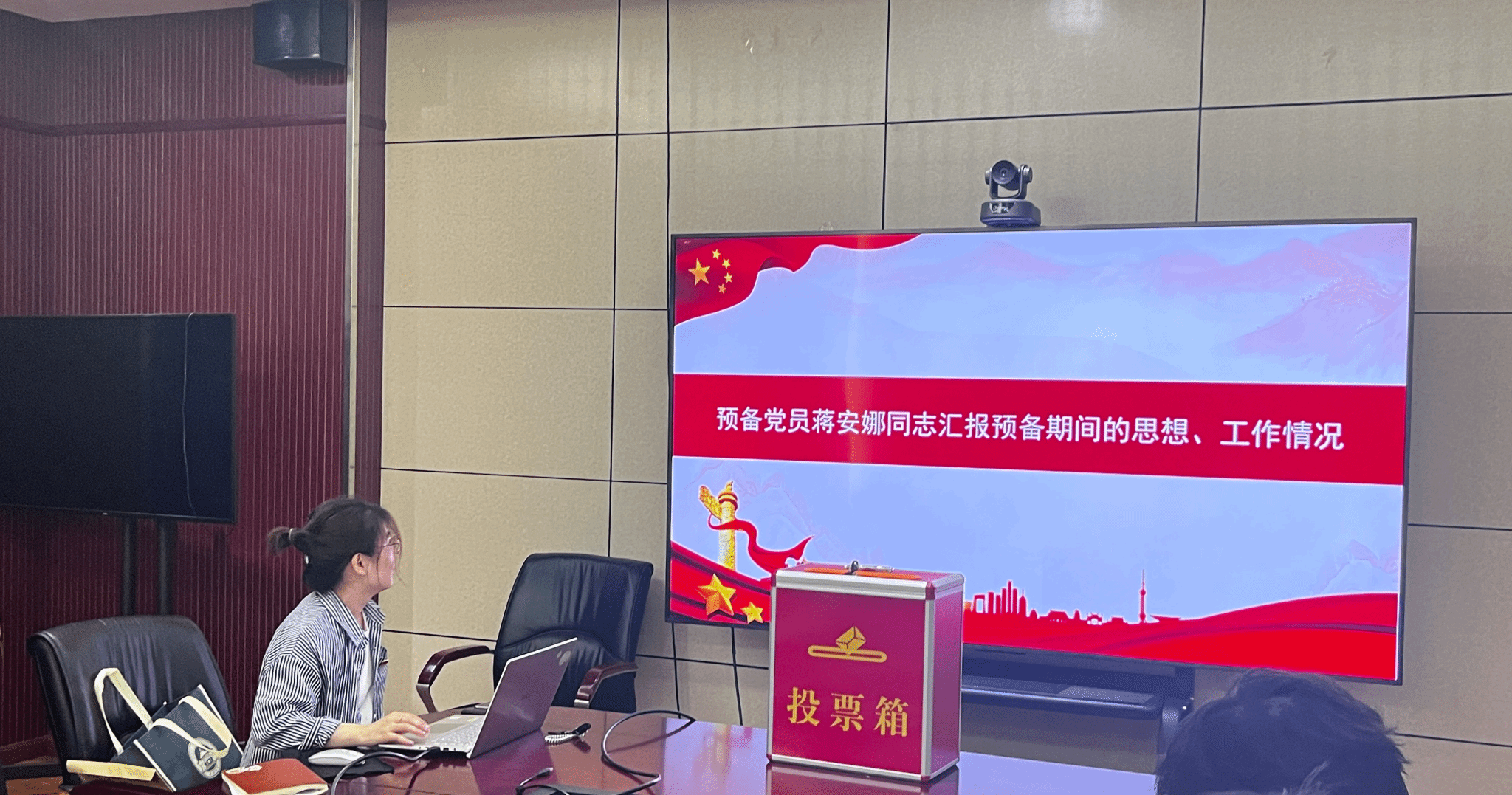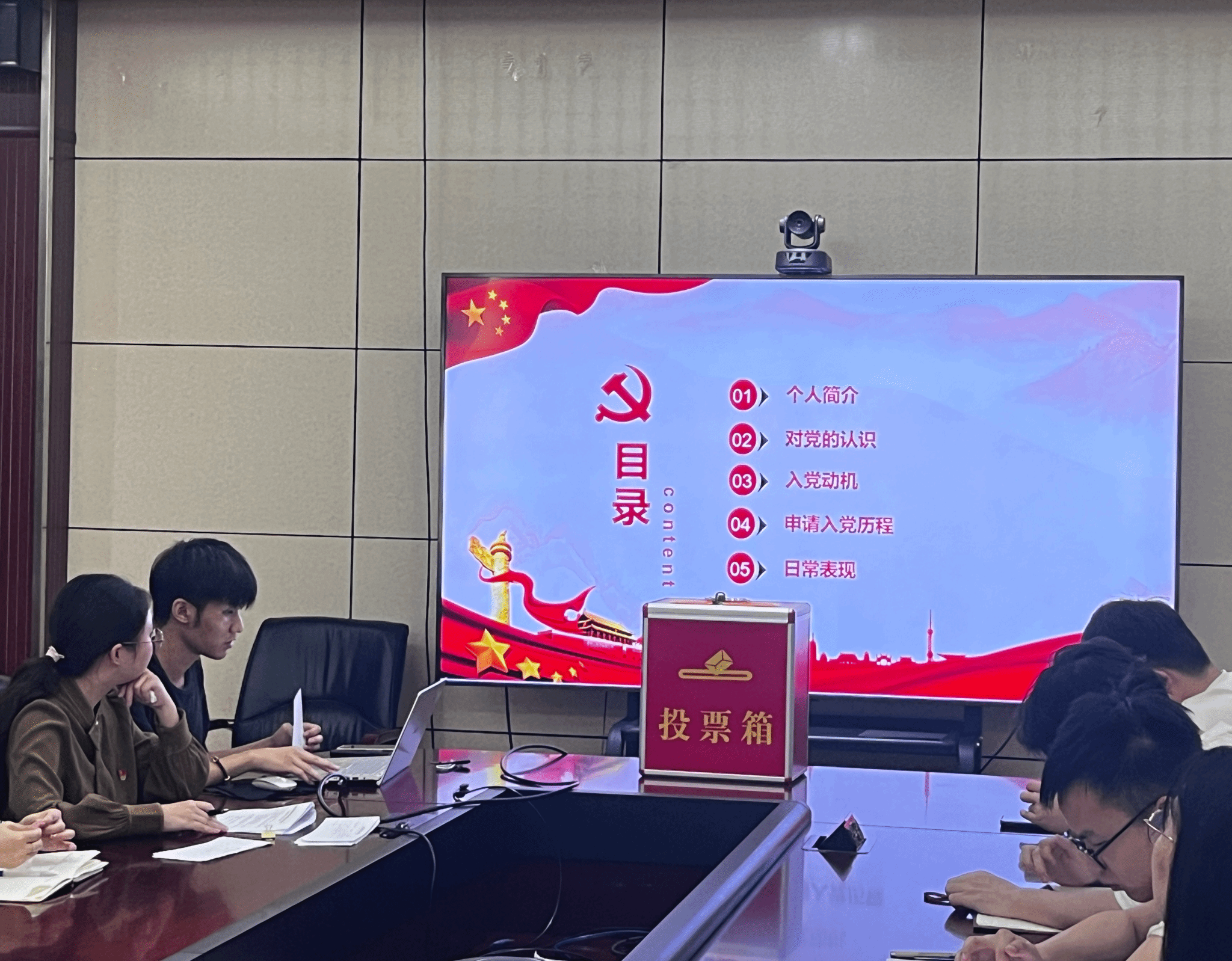 320会议室召开预备党员转正暨接收预备党员大会。本次会议由党支部书记张梦琪同志主持。本次会议应到正式党员19名,实到正式党员16名,有表决权的到会人数超过应到会有表决权人数的半数,符合规定人数。