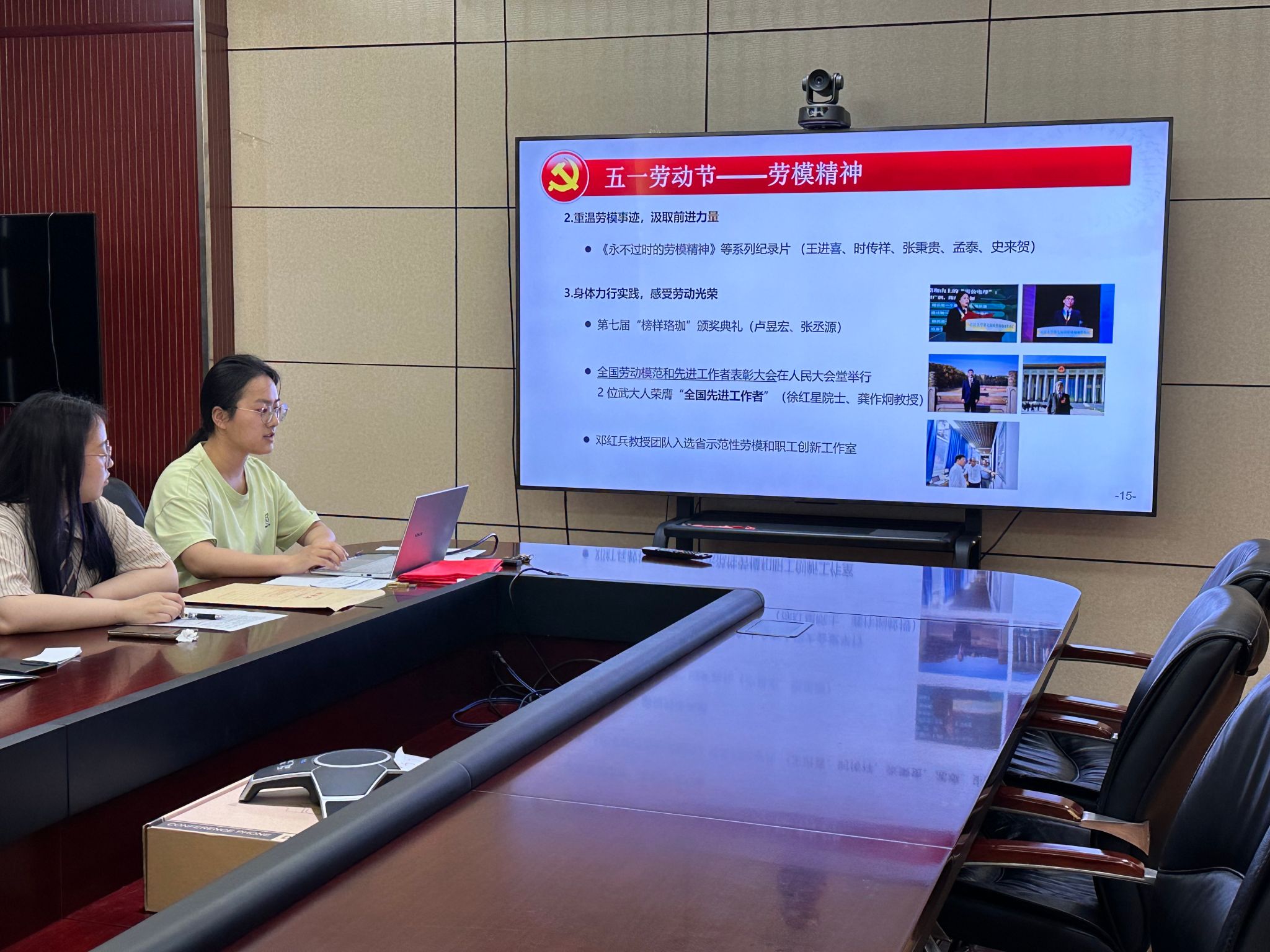2024年5月22日晚8:00,地理科学与国土资源系研究生第三党支部于色情直播app320会议室召开接收预备党员支部大会暨“学习劳模精神”主题党日活动。本次会议由支部书记马淼同志主持。