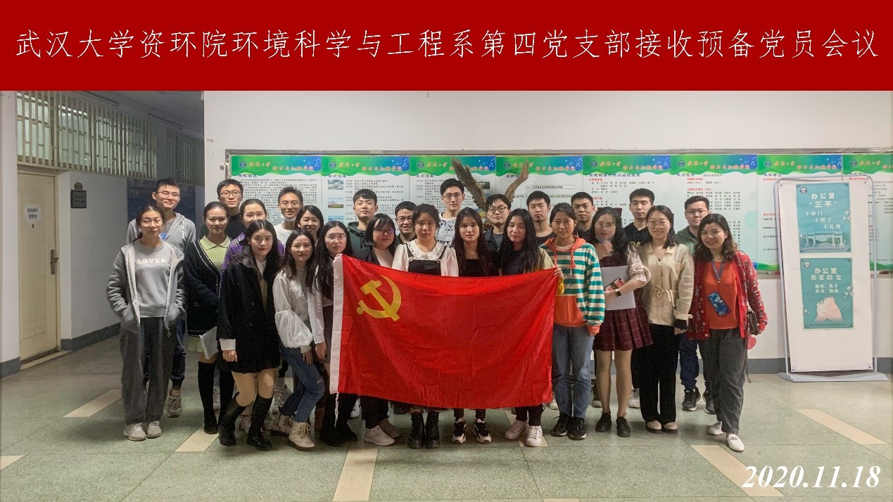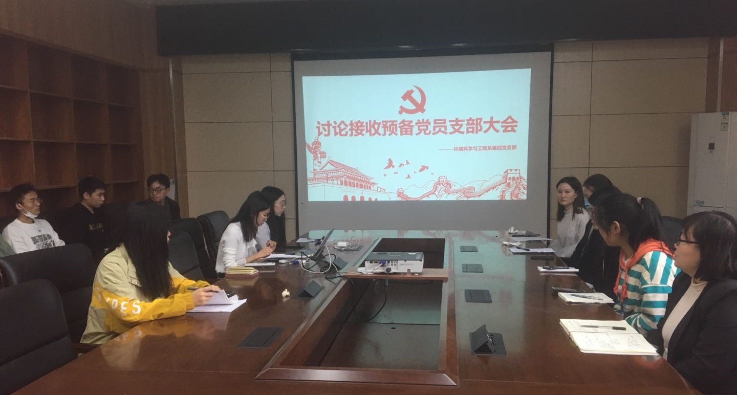 环境科学与工程系第四党支部于工学部九教212会议室召开支部大会,讨论并通过了接收汪懿、郭娜、向凤龄和苏思倩等四位同志转为预备党员的申请。并开展了关于学习习近平生态文明思想主题党日活动。