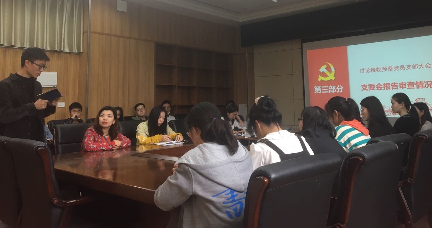 会议开始,四位同志就对党的认识、入党动机、本人履历、家庭成员和主要社会关系情况、现实表现等进行了汇报。随后,四位同志的入党介绍人分别就其近期的相关情况以及思想表现,并对其在成为积极分子的一年内的表现做出了客观、公正的评价。